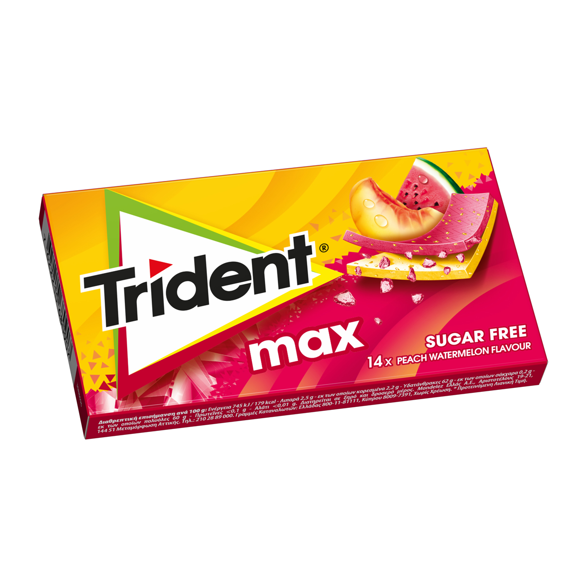 Trident Max Chewing Gum Peach & Watermelon Sugar Free 14 Pieces 27 gr