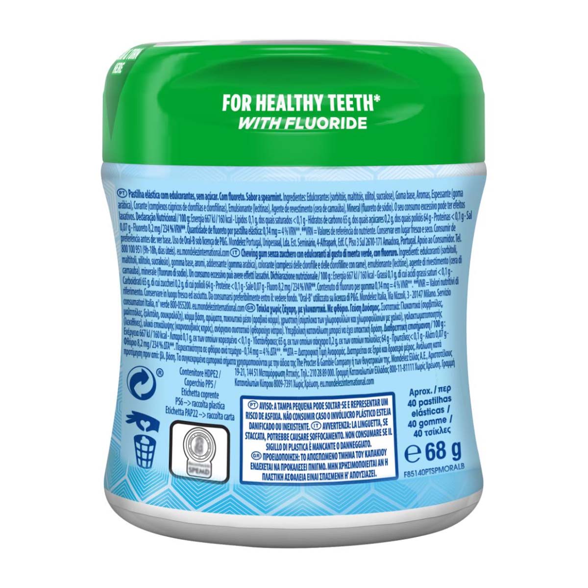 Sugar-free gum with fluoride and mint flavor for healthy teeth.