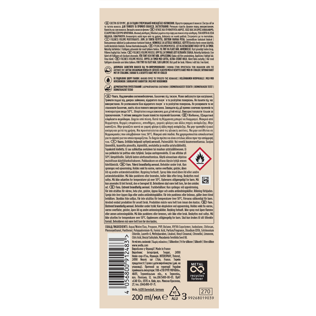 Fall in love with your soft and voluminous hair, without sticky residue, thanks to Wellaflex Fullness Volume Foam for fine hair. This scalp-friendly, dermatologist-tested styling foam provides ultra-strong hold that lasts up to 24 hours and helps you achieve thicker, richer-looking hair. The foam is silicone-free, provides protection from the sun's UV rays and the packaging is made from 45% recycled materials. For more hair styling options and more volume, try the full line of Wellaflex Fullness Volume products. Discover the ultra-strong Spray, which gives fine hair even more volume and an ultra-strong hold that lasts up to 48 hours. Seize every moment with complete confidence and make sure your look is always well-groomed, thanks to Wella's wide range of styling products for women.