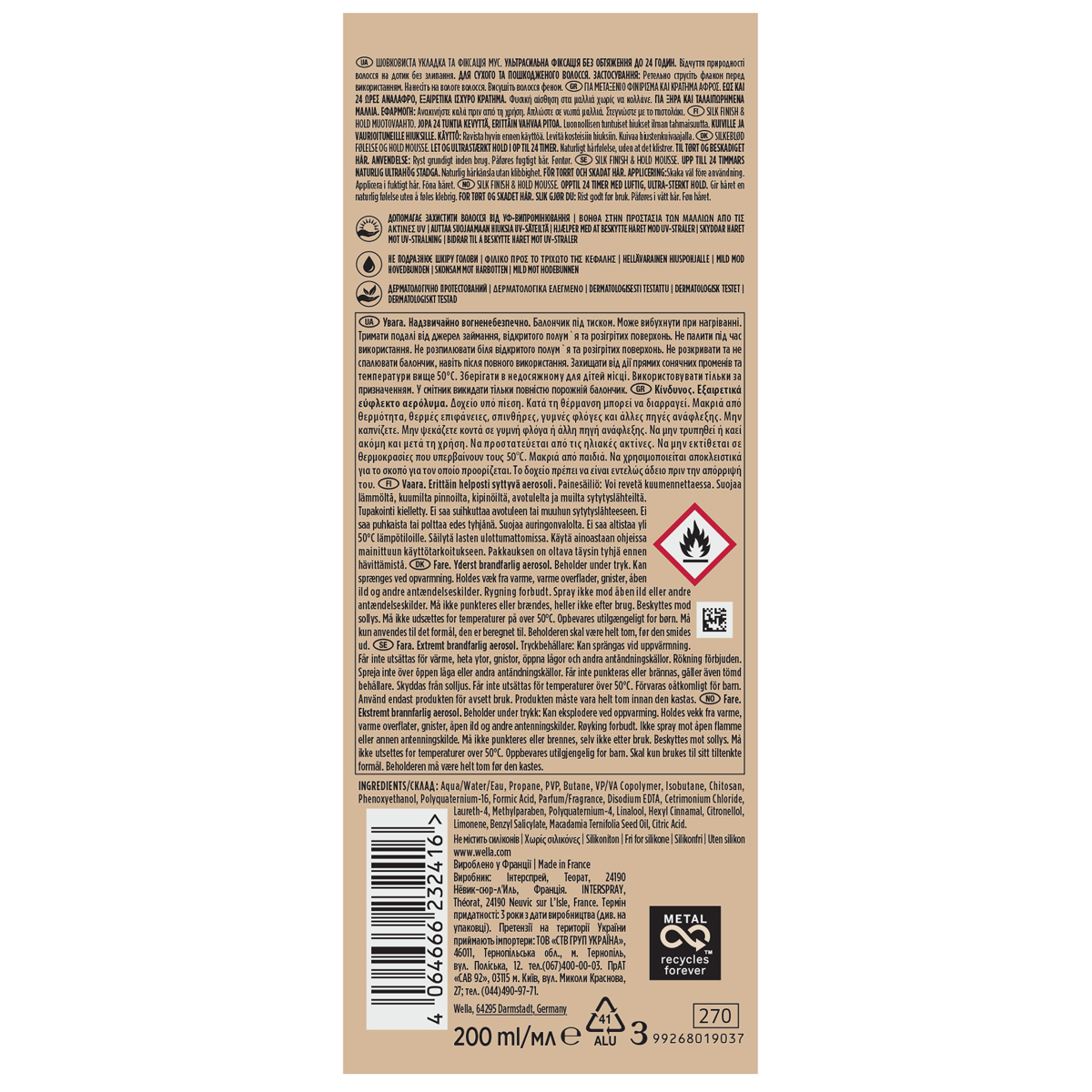 Introducing Wellaflex Silk Finish & Hold Hair Foam. A gentle on the scalp, dermatologically tested styling foam for hair with volume and a natural feel. Shape your hair effortlessly and achieve ultra-strong hold without sacrificing flexibility or natural movement. This styling foam contains no silicones, provides protection from the sun's UV rays and the packaging is made from 45% recycled materials. For more hair styling options and more volume, try the full line of Wellaflex Silk Finish & Hold products. Discover our ultra-strong spray, which provides long-lasting but natural hold, with no sticky residue.