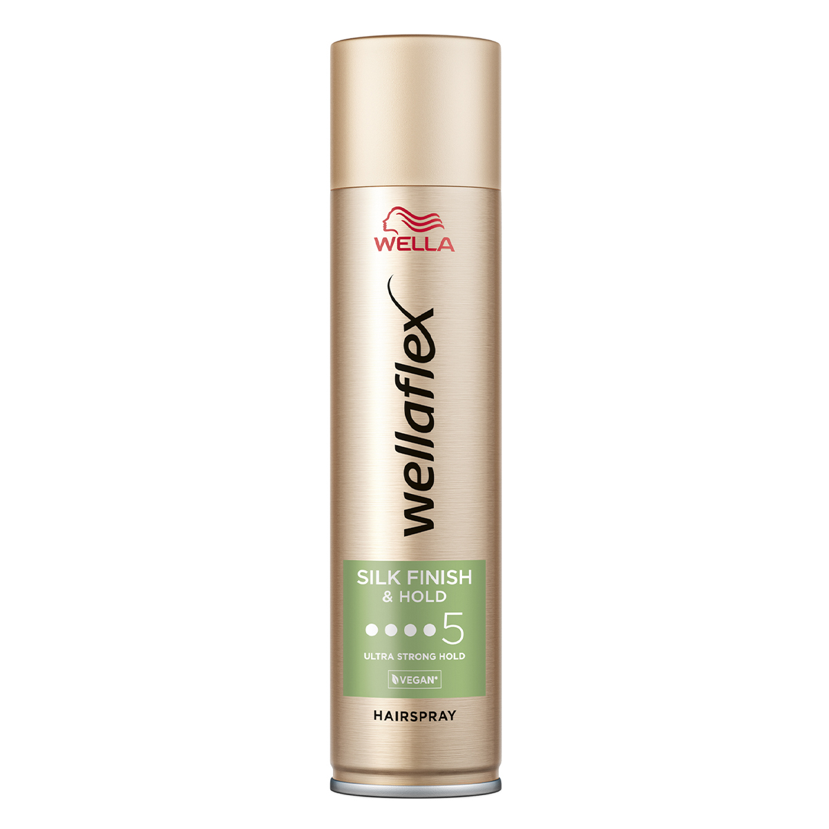 Introducing Wellaflex Hairspray Silk Finish & Hold. A gentle on the scalp, dermatologist-tested styling hairspray for hair with volume and a natural feel. A few sprays are all it takes to get an ultra-strong hold that lasts up to 48 hours, without making your hair sticky or hard. This vegan* spray formula contains no animal-derived ingredients, provides UV protection from the sun and the packaging includes a 75% recycled plastic cap. For more hair styling options and more volume, try the full line of Wellaflex Silk Finish & Hold products. Discover our ultra-strong foam that offers long-lasting but natural hold, without sticky residue. Seize every moment with complete confidence and make sure your look is always groomed, thanks to Wella's wide range of styling products for women. *Free of ingredients of animal origin.