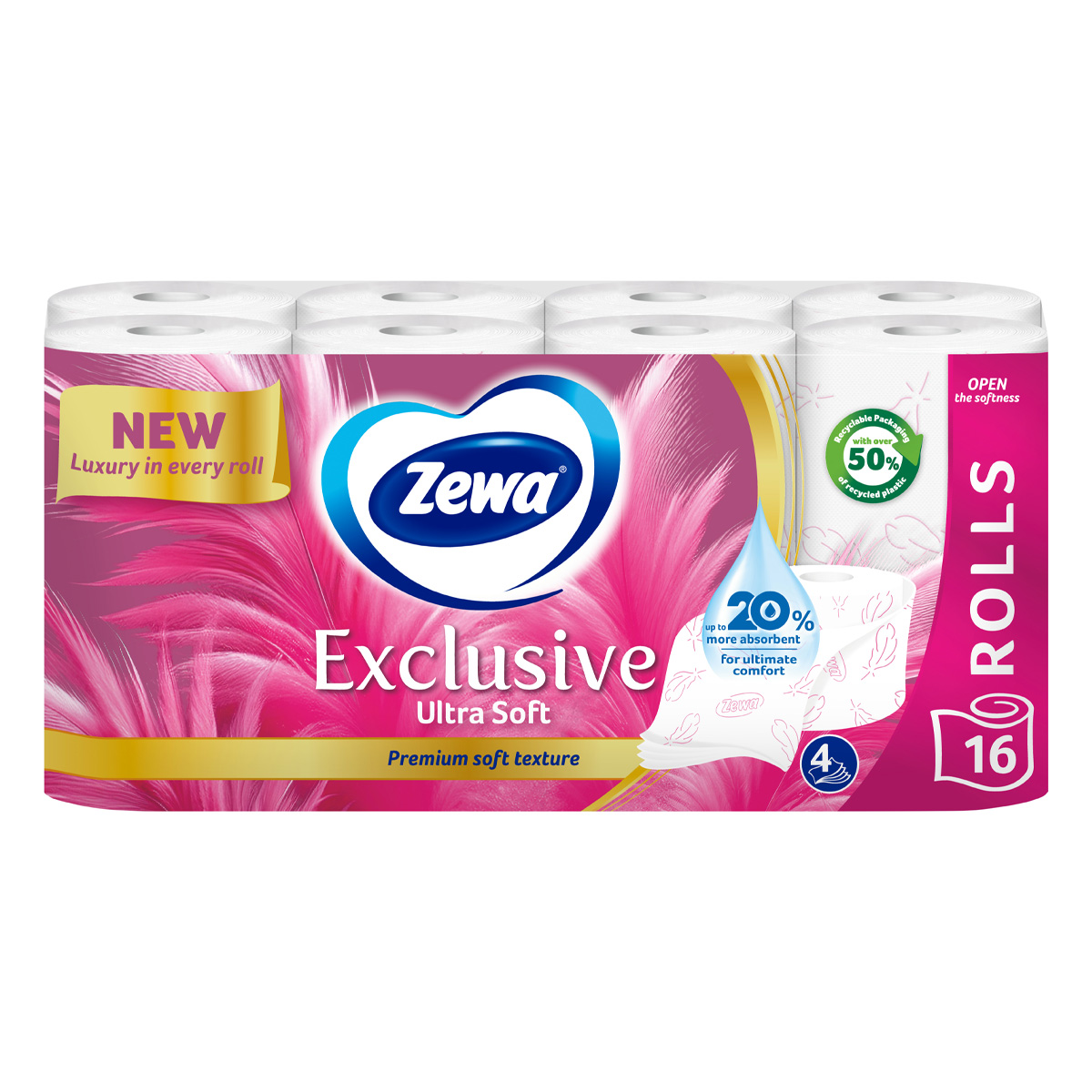 The feathery texture of this soft four-ply paper touches the skin extremely gently while being extremely durable. Zewa Exclusive Ultra Soft comes in white with a pink decorative design. Now in new packaging with a practical handle to make it easy to carry and a distinctive design that showcases Zewa's high level of care.