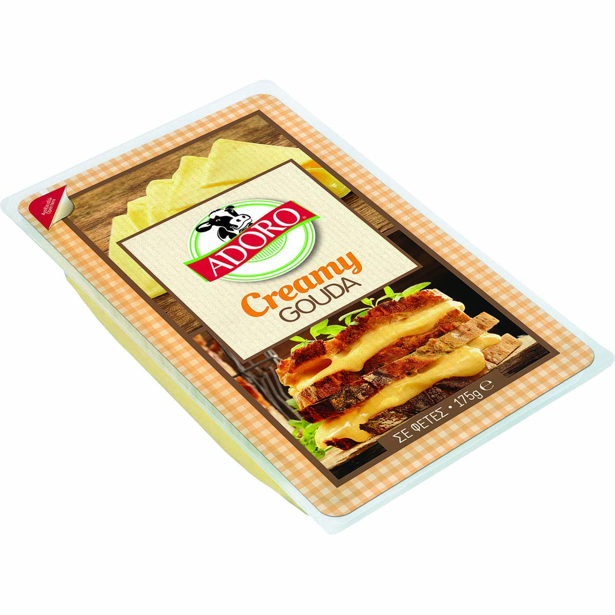 Adoro Creamy Gouda σε φέτες. Παράγεται στην Ολλανδία.