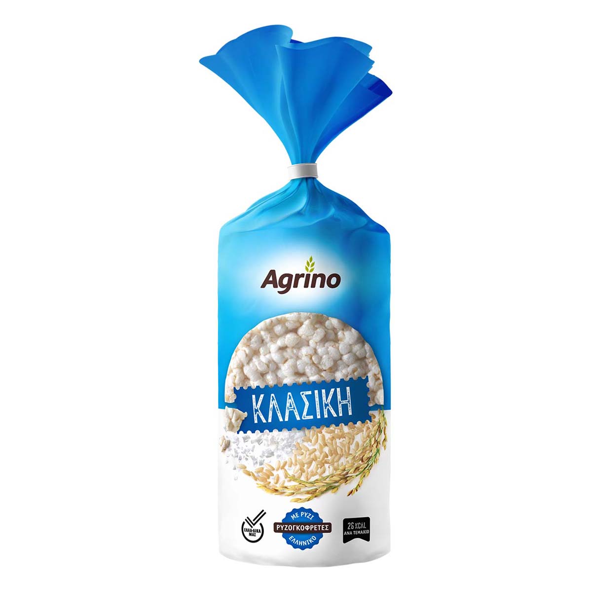 Οι Ρυζογκοφρέτες Agrino Κλασικές περιέχουν 99% καστανό ρύζι και 1% αλάτι Μεσολογγίου. Έχουν χαμηλά λιπαρά, αποτελουν πηγή φυτικών ινών και ψευδαργύρου και διαθέτουν υψηλή περιεκτικότητα σε φώσφορο, μαγνήσιο και μαγγάνιο. Δεν περιέχουν γλουτένη και είναι κατάλληλες για vegans.