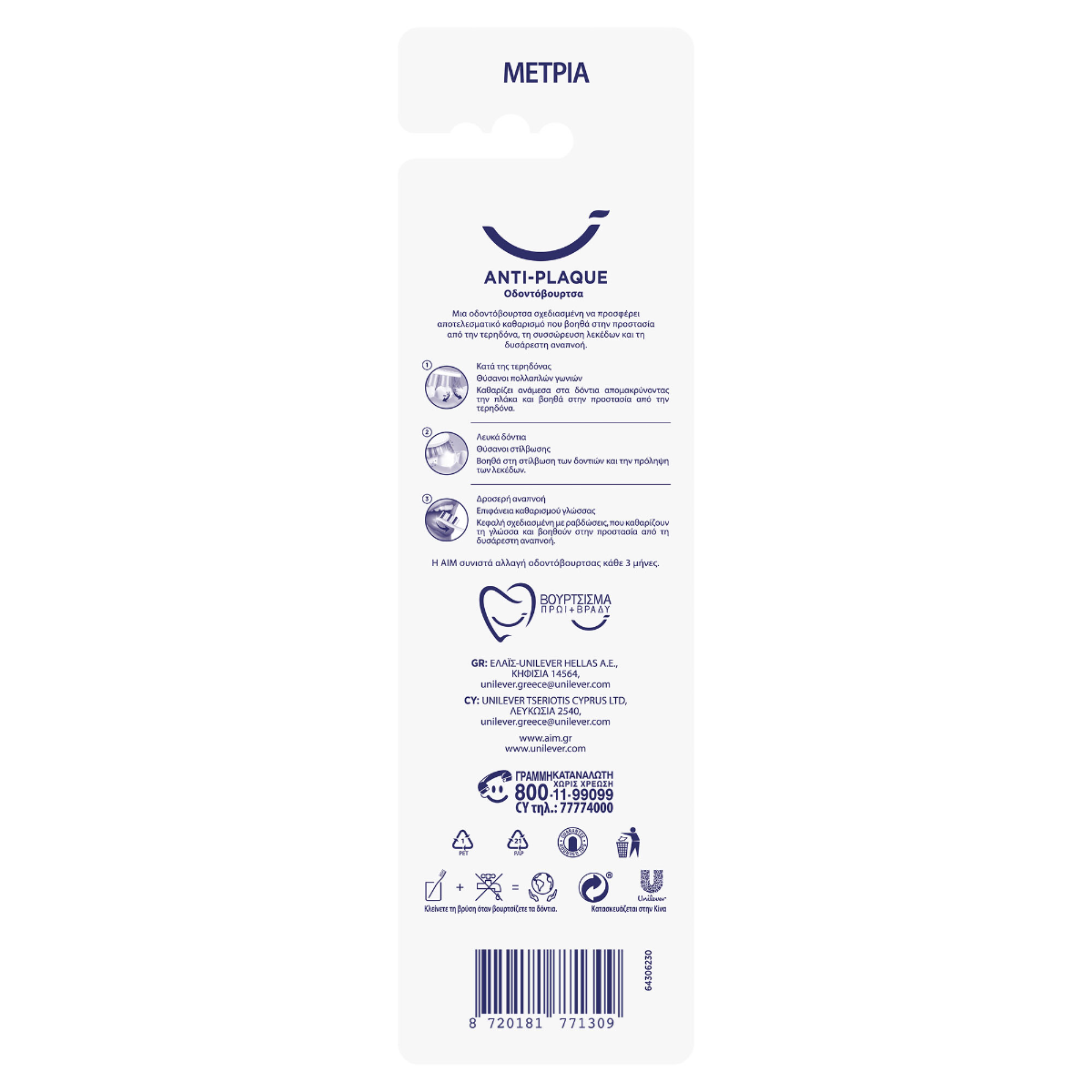 Μια οδοντόβουρτσα σχεδιασμένη να προσφέρει αποτελεσματικό καθαρισμό που βοηθά στην προστασία από την τερηδόνα, τη συσσώρευση λεκέδων και τη δυσάρεστη αναπνοή. Έχει θυσάνους πολλαπλών γωνιών για να καθαρίζει ανάμεσα στα δόντια απομακρύνοντας την πλάκα και προστατεύοντας από την τερηδόνα. Επίσης, βοηθά στη στίλβωση των δοντιών και τη πρόληψη των λεκέδων. Η κεφαλή σχεδιασμένη με ραβδώσεις βοηθά στο καθαρισμό της γλώσσας και προστατεύει από τη δυσάρεστη αναπνοή.