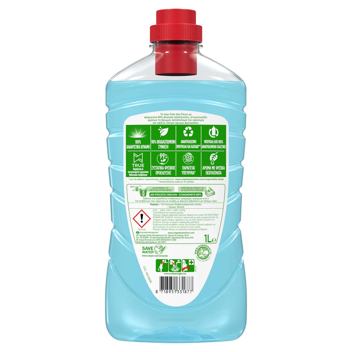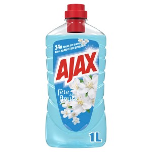 Το Ajax Fete des Fleurs Γιασεμί Υγρό Καθαριστικό Πατώματος προσφέρει έντονο άρωμα φρεσκάδας, που διαρκεί 24 ώρες. Το Ajax πολυκαθαριστικό προσφέρει 100% καθαριστική δύναμη.