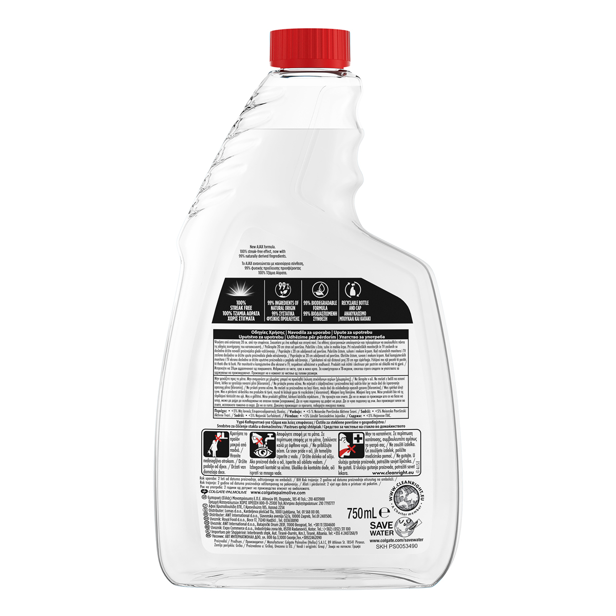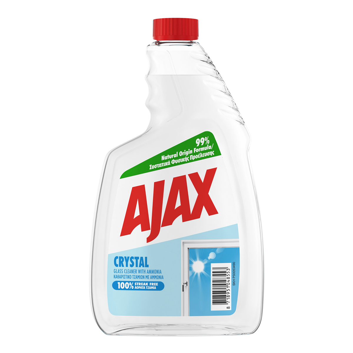 Το Ajax ανανεώνεται με καινούργια σύνθεση, 99% φυσικής προέλευσης προσφέροντας 100% Τζάμια Αόρατα. 100% τζάμια αόρατα χωρίς στίγματα. 99% συστατικά φυσικής προέλευσης. 99% βιοδιασπώμενη σύνθεση. Ανακυκλώσιμο μπουκάλι και καπάκι. Παράγεται υπεύθυνα.