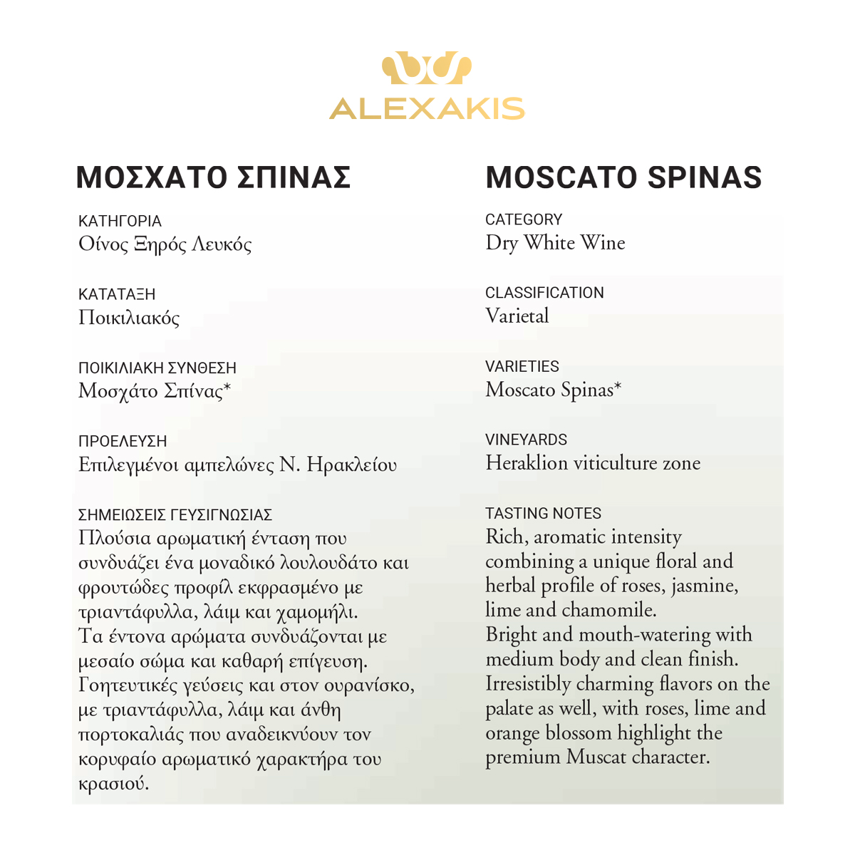Πλούσια αρωματική ένταση που συνδυάζει ένα μοναδικό λουλουδάτο και φρουτώδες προφίλ εκφρασμένο με τριαντάφυλλα, λάιμ και χαμομήλι. Τα έντονα αρώματα συνδυάζονται με μεσαίο σώμα και καθαρή επίγευση. Γοητευτικές γεύσεις και στον ουρανίσκο, με τριαντάφυλλα, λάιμ και άνθη πορτοκαλιάς που αναδεικνύουν τον κορυφαίο αρωματικό χαρακτήρα του κρασιού.