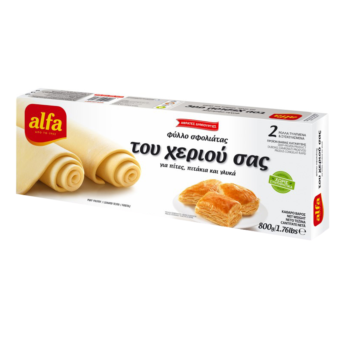 Έχεις αδυναμία στους γλυκούς αλλά και τους αλμυρούς πειρασμούς; Πλέον δεν χρειάζεται να αντιστέκεσαι σ’ αυτά που αγαπάς… Με το φύλλο σφολιάτας “του χεριού σας” μπορείς να δημιουργήσεις εύκολα και γρήγορα συνταγές με αφράτο φούσκωμα και αξεπέραστη γεύση! Η συσκευασία περιέχει 2 ρολά Τυλιγμένα και 2 συσκευασμένα.