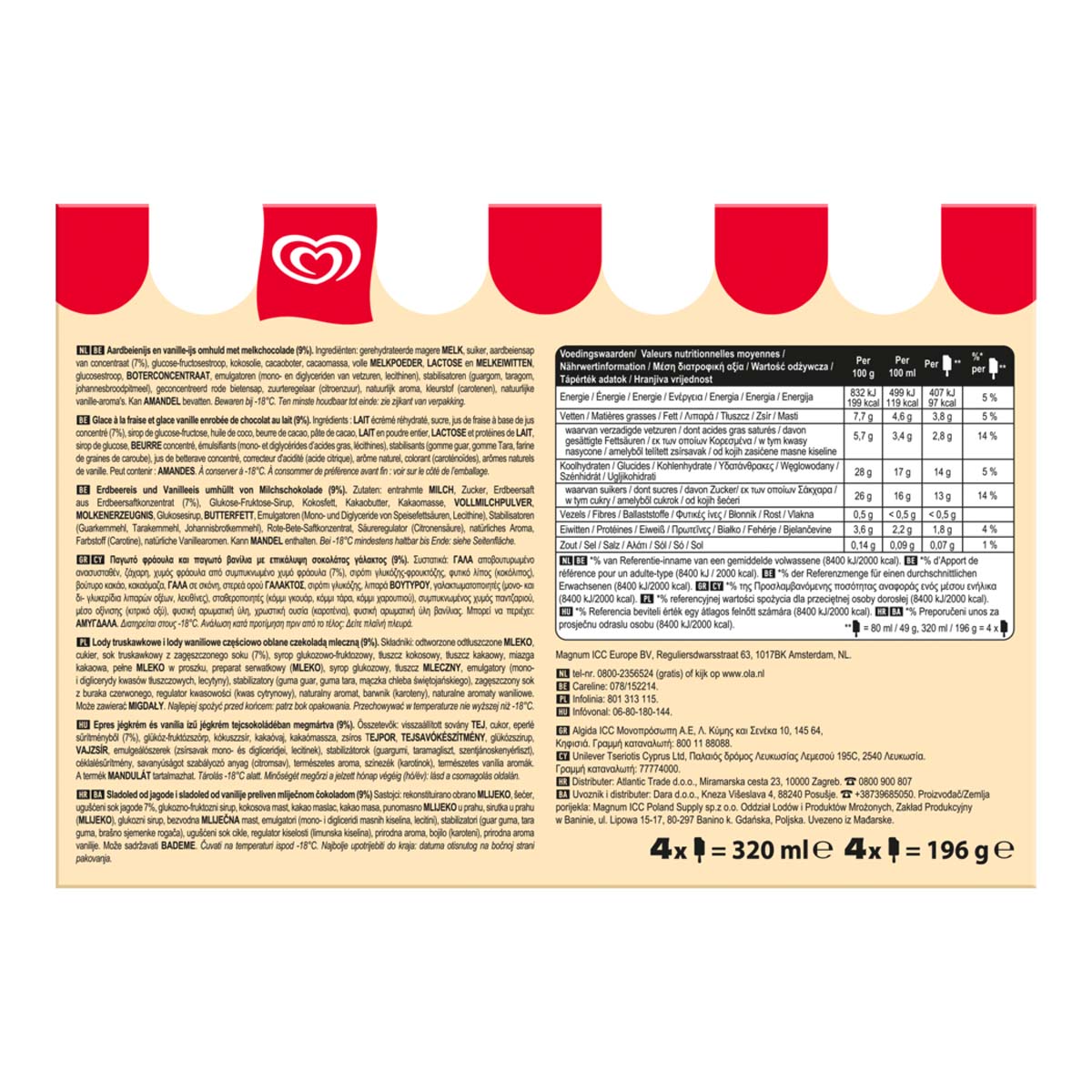 Παγωτό φράουλα και παγωτό βανίλια με επικάλυψη σοκολάτας γάλακτος (9%).