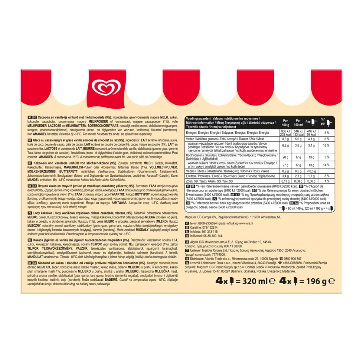 Παγωτό κακάο και παγωτό βανίλια με επικάλυψη σοκολάτας γάλακτος (9%).