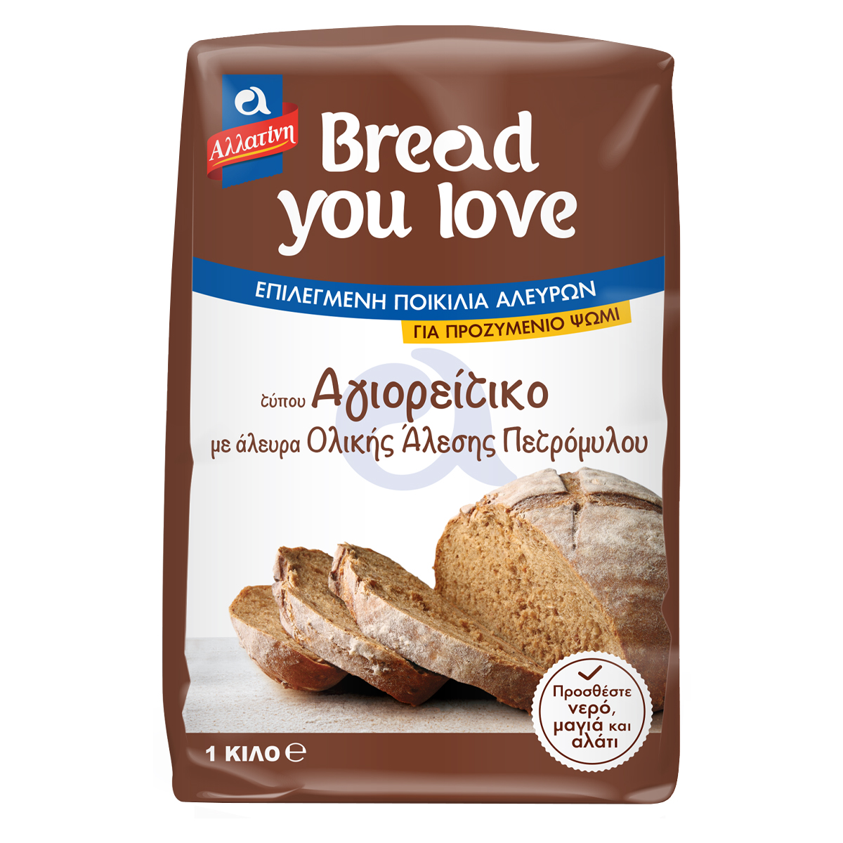 Η νέα σειρά της Αλλατίνη, Bread you love, με επιλεγμένες ποικιλίες αλεύρων για προζυμένιο ψωμί, αποτελεί την ιδανική επιλογή για εύκολη παρασκευή σπιτικού ψωμιού. Γιατί εμείς που αγαπάμε το καλό σπιτικό ψωμί, την ιδιαίτερη γεύση του, το άρωμα του αλλά και την ιδιαίτερη διαδικασία ζύμωσης, ξέρουμε ότι καλό Αλεύρι σημαίνει καλό Ψωμί . Η Αλλατίνη, συνδυάζει εξαιρετικής ποιότητας άλευρα σιταριού αλεσμένο σε Πετρόμυλο και σίκαλη ολικής άλεσης, μαζί με όλα τα φυσικά αρώματα προζυμιών. Τώρα μπορείτε να φτιάξετε μόνοι σας και να απολαύσετε την ζεστή γεύση και τα έντονα αρώματα ενός εξαιρετικού ψωμιού που είναι εμπνευσμένο από τις παραδοσιακές συνταγές των μοναχών του Αγίου Όρους.