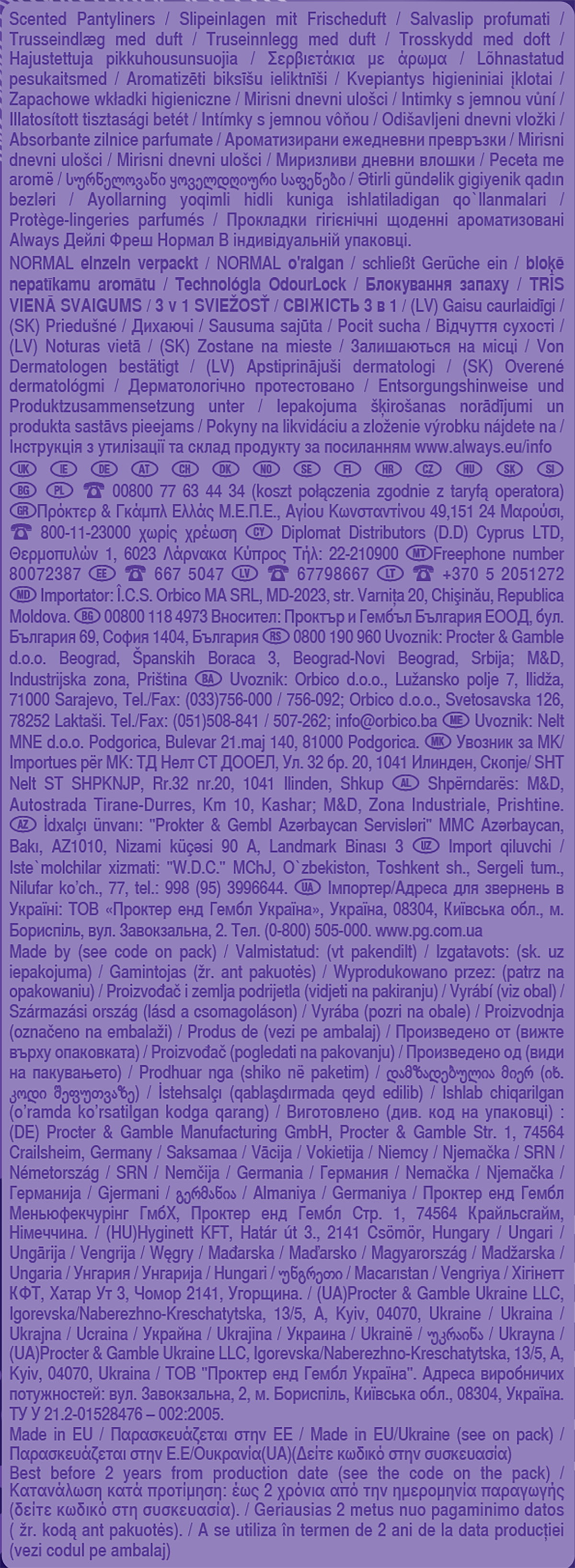 Fresh: Ανεξάρτητα από το πού σε βγάζει η κάθε σου ημέρα, τα σερβιετάκια Always Daily Normal To Go σου προσφέρουν φρεσκάδα και προστασία όλη την ημέρα. Τα Always Daily Single Σερβιετάκια διατίθενται σε ατομική συσκευασία για αίσθηση απόλυτης φρεσκάδας όπου κι αν βρίσκεσαι. Ιδανικά για τις κολπικές εκκρίσεις, ως επιπλέον προστασία για την περίοδο με ακανόνιστη και ελαφριά ροή ή για την ελαφριά ακράτεια.