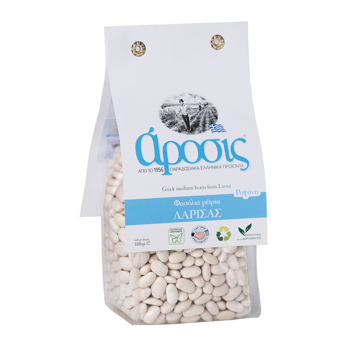 Στις πεδιάδες της Θεσσαλίας, σε υψόμετρο πάνω από τα 50 μέτρα, έχουν προσαρμοστεί στο ζεστό μικροκλίμα της περιοχής τα μέτρια (ποικιλία Ραψάνη) Φασόλια Λάρισας. Εδώ και δεκαετίες, καλλιεργούνται με παραδοσιακές μεθόδους σε ποτιστικά αγροκτήματα, σε ποικιλία εδαφών από βαριά αργιλώδη έως ελαφριά αμμώδη και ελαφρώς όξινα, με πλούσια θρεπτικά συστατικά. Είναι ευκολόβραστα και νόστιμα με βουτυρώδη υφή.
