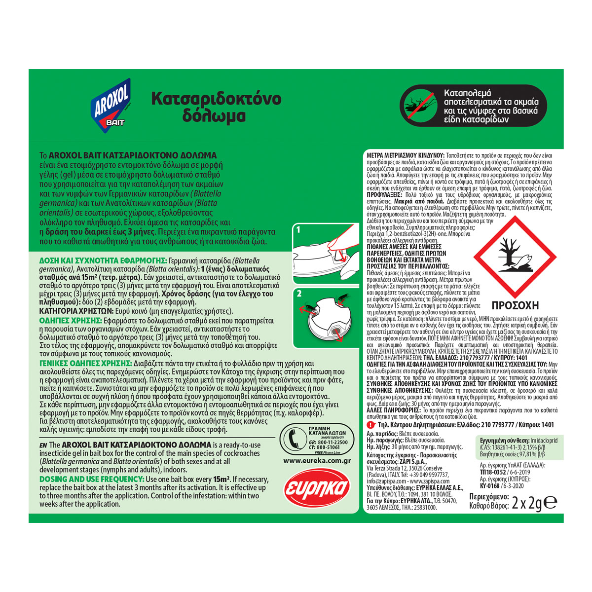 Aroxol Bait Κατσαριδοκτόνο Δόλωμα 2 Τεμάχια