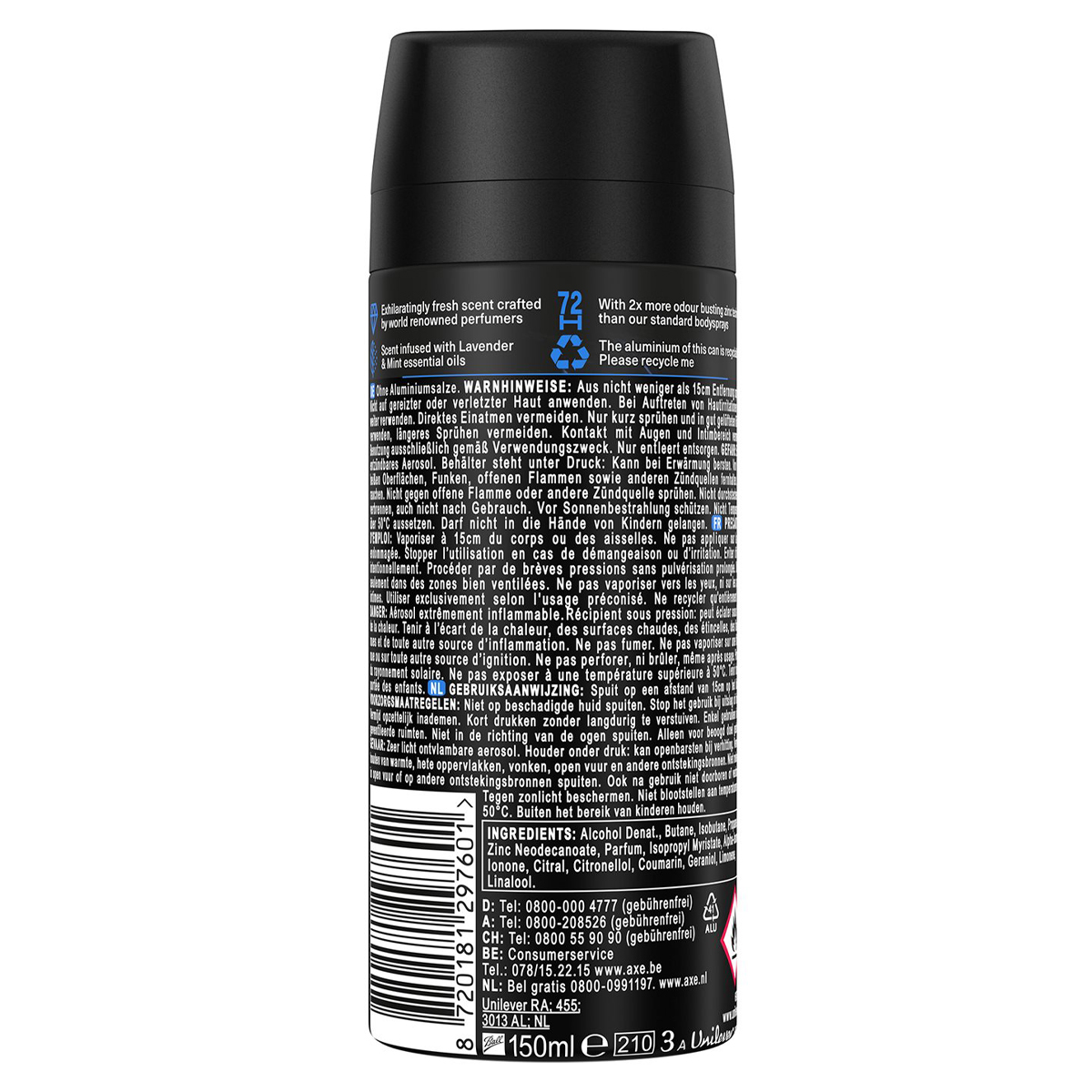 Αποσμητικό AXE Blue Lavender για προστασία απο τις οσμές έως 72 ώρες, αίσθηση φρεσκάδας και ασυναγώνιστης αυτοπεποίθησης. Χωρίς αλουμίνιο, εμπλουτισμένο με αιθέρια έλαια λεβάντας, μέντας και κεχριμπαριού.