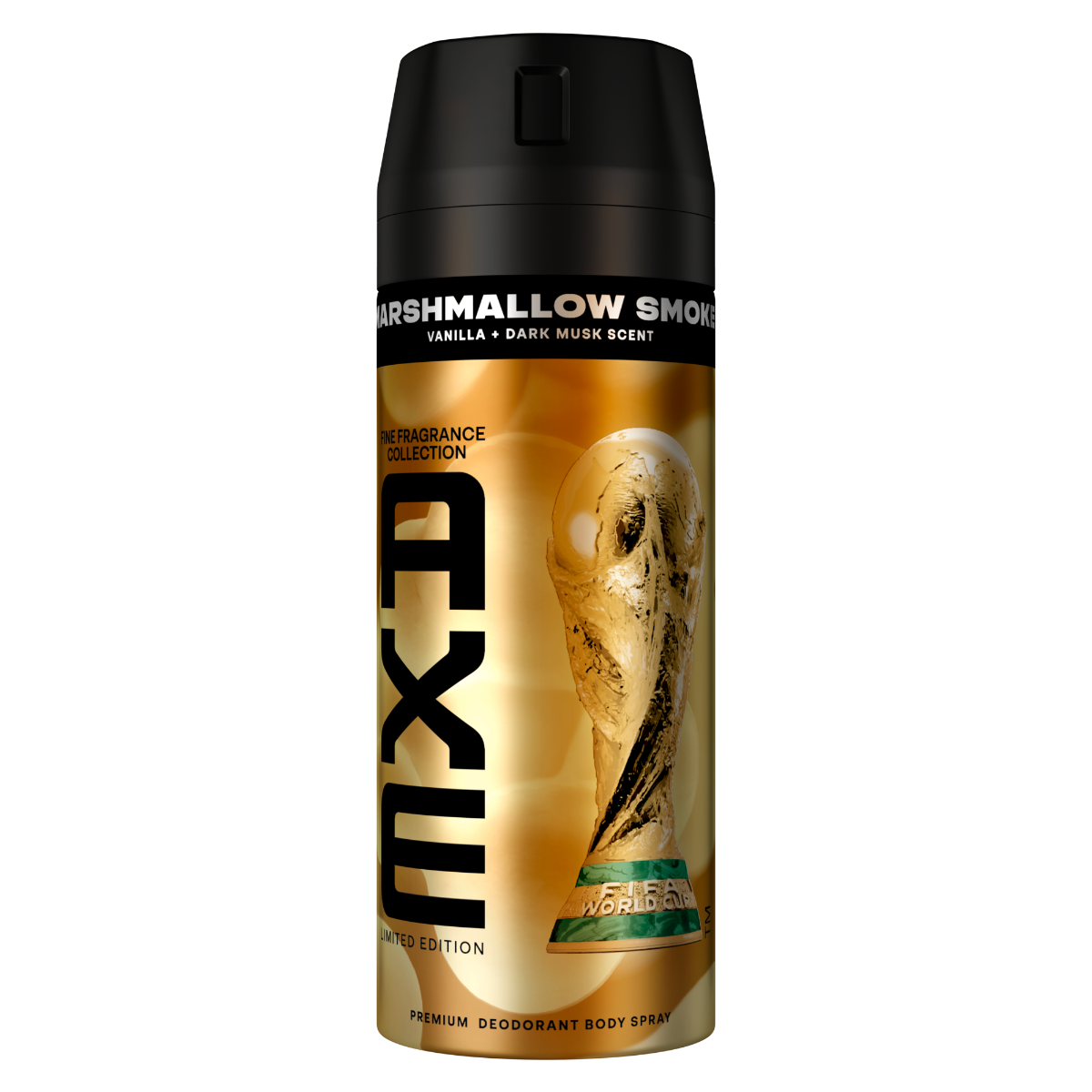 NEO LIMITED EDITION FIFA SPRAY. Μύρισε πιο εθιστικά από όλους με το AXE Marshmallow Smoke, απο τη συλλογή αρωμάτων Fine Fragrance Collection. Το αποσμητικό σπρέι σώματος AXE Marshmallow Smoke έχει ένα ζεστό, gourmand άρωμα με απαλές νότες βανίλιας και φουντουκιού, που ενισχύονται από μια cozy, creamy αίσθηση coconut water και καθαρού musk. Μια φρέσκια, σπινθηροβόλα πινελιά στην αρχή δίνει στο άρωμα την τέλεια ισορροπία γλυκού και δροσερού, προσφέροντας προστασία από τις οσμές για έως και 72 ώρες ασυναγώνιστης αυτοπεποίθησης. That's the AXE effect!
