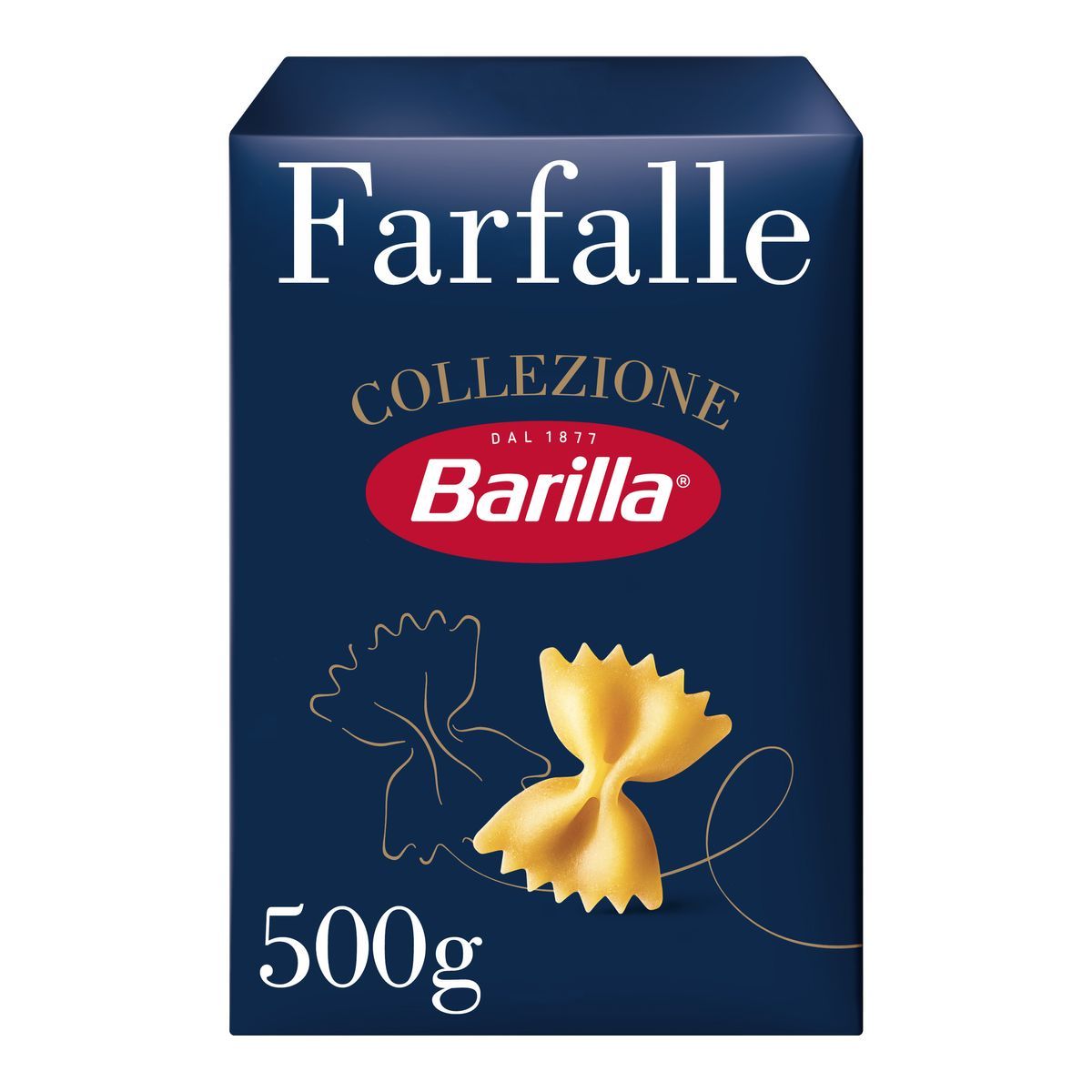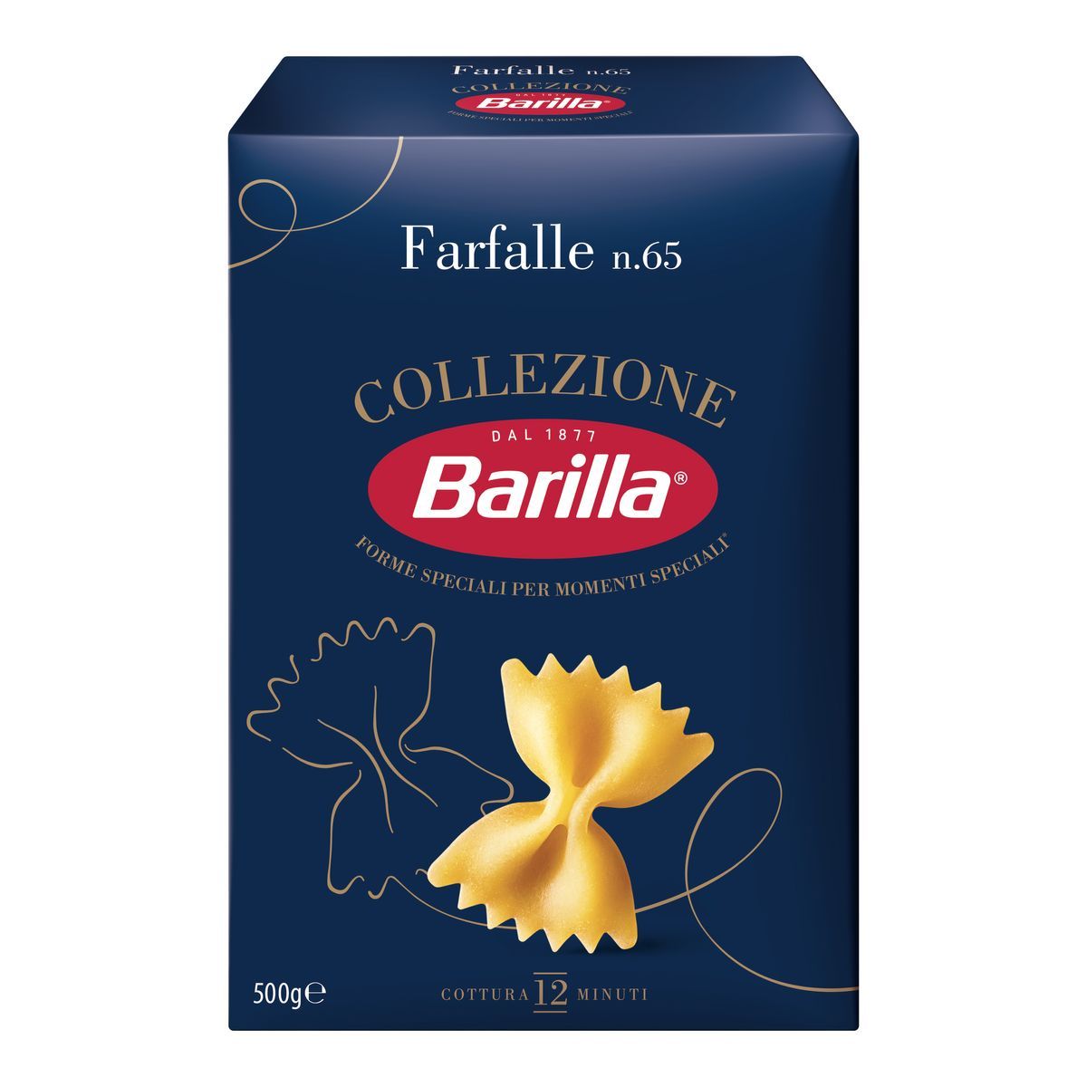 Τα μακαρόνια Barilla Farfalle (Φιογκάκια) φτιάχνονται από ένα φύλλο ζύμης που κόβεται σε τετραγωνάκια και "τσιμπιέται" στο κέντρο η οποία ξαφνιάζει τον ουρανίσκο, μέσω της διαφορετικής υφής του πιο χοντρού κεντρικού τμήματος και των δύο άκρων: μια πραγματική απόλαυση για τους καλοφαγάδες. Από τα πιο χαρούμενα σχήματα στην κουζίνα, τα ζυμαρικά Farfalle, όπως οι πεταλούδες, πετούν από τη μία γεύση στην άλλη, και προσαρμόζονται σε πολλούς διαφορετικούς συνδυασμούς γεύσεων.