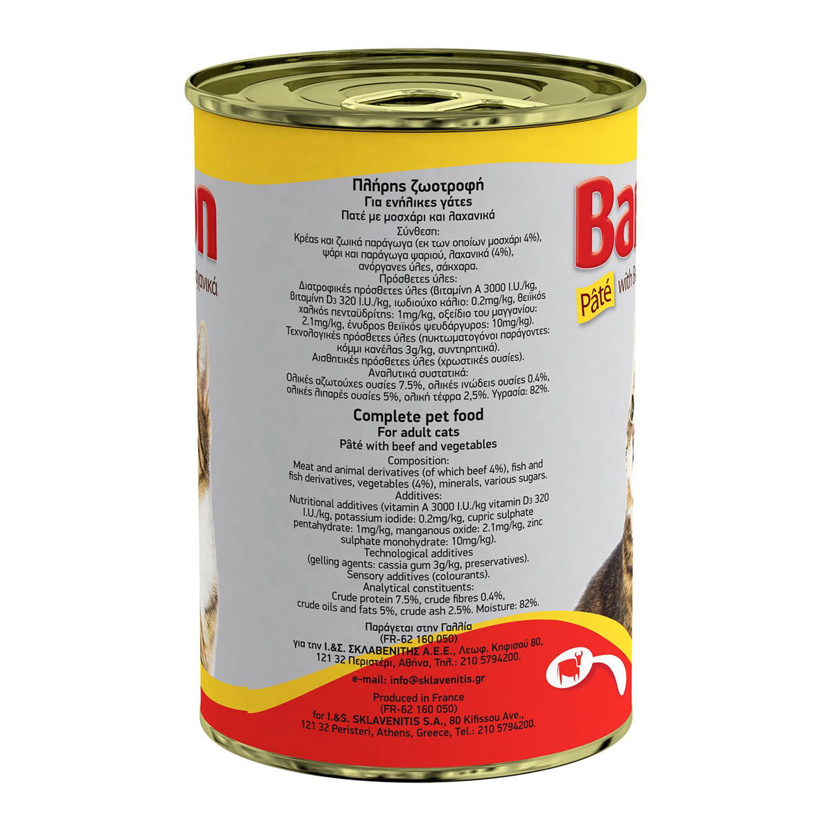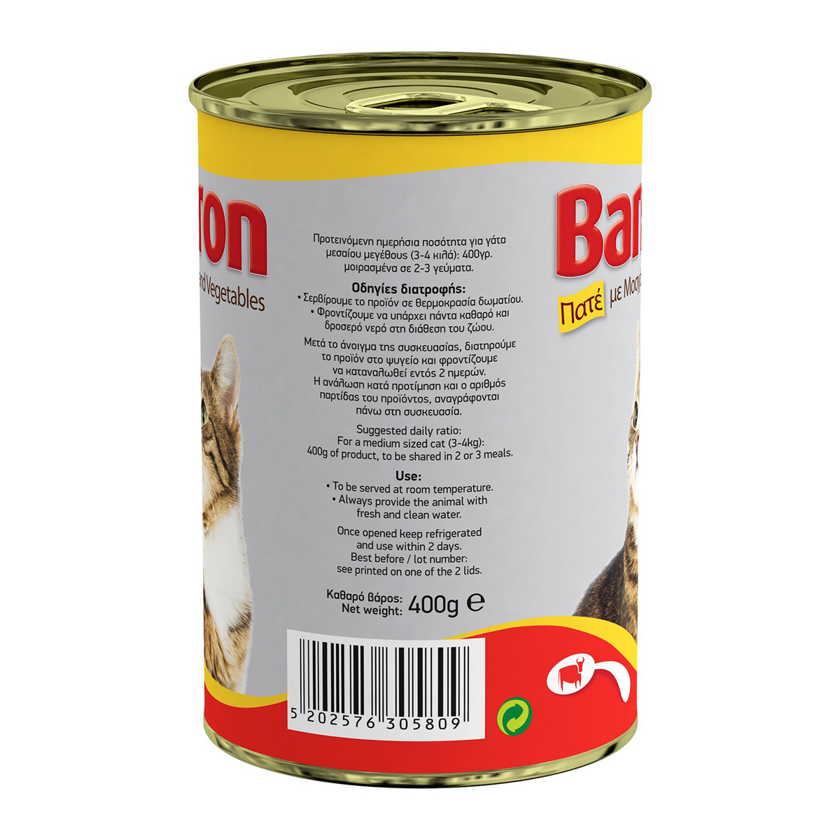 Barron Υγρή Τροφή Για Γάτες Πατέ Με Μοσχάρι & Λαχανικά 400 gr