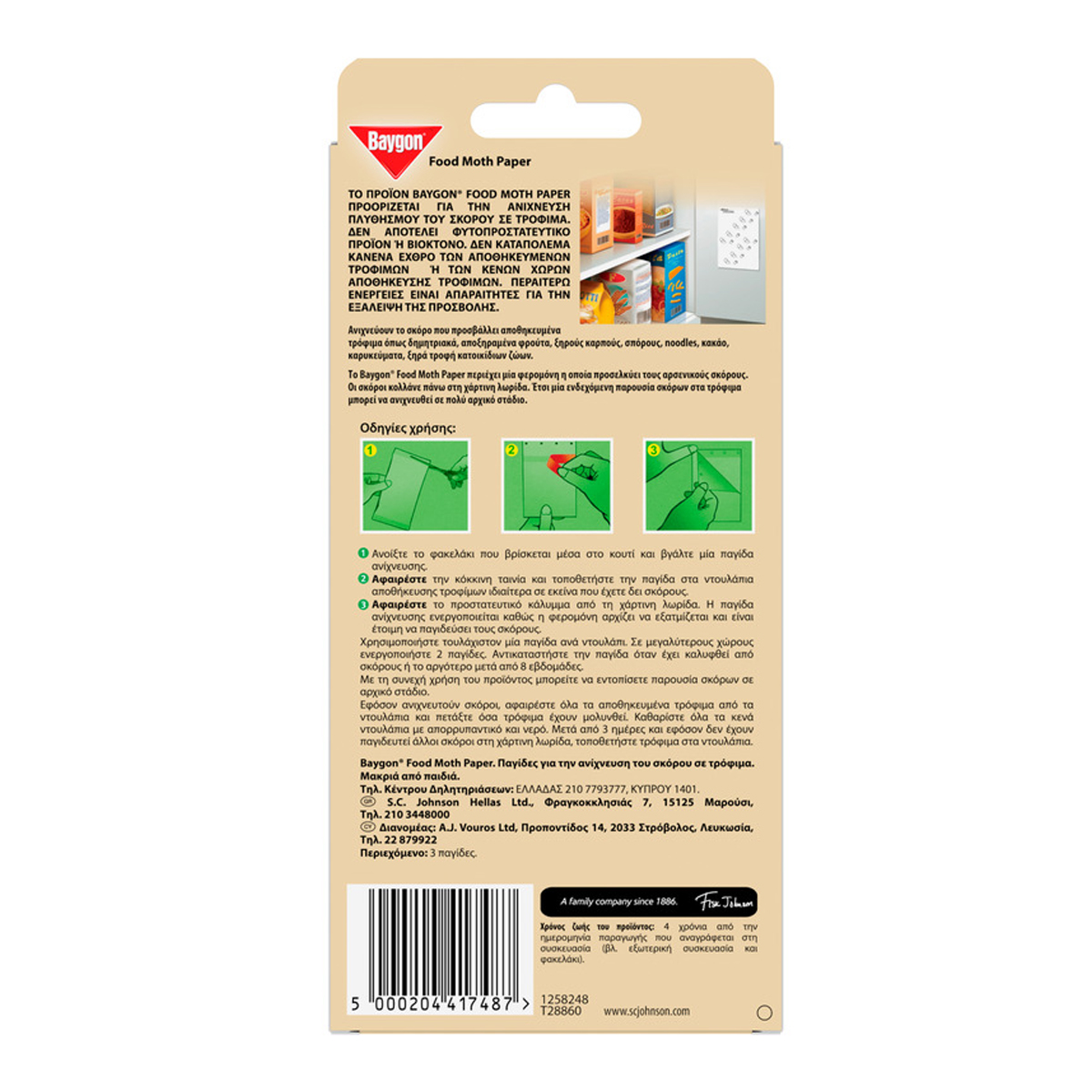 Baygon Σκοροκτόνο Food Moth Paper Χωρίς Άρωμα 3 Τεμάχια