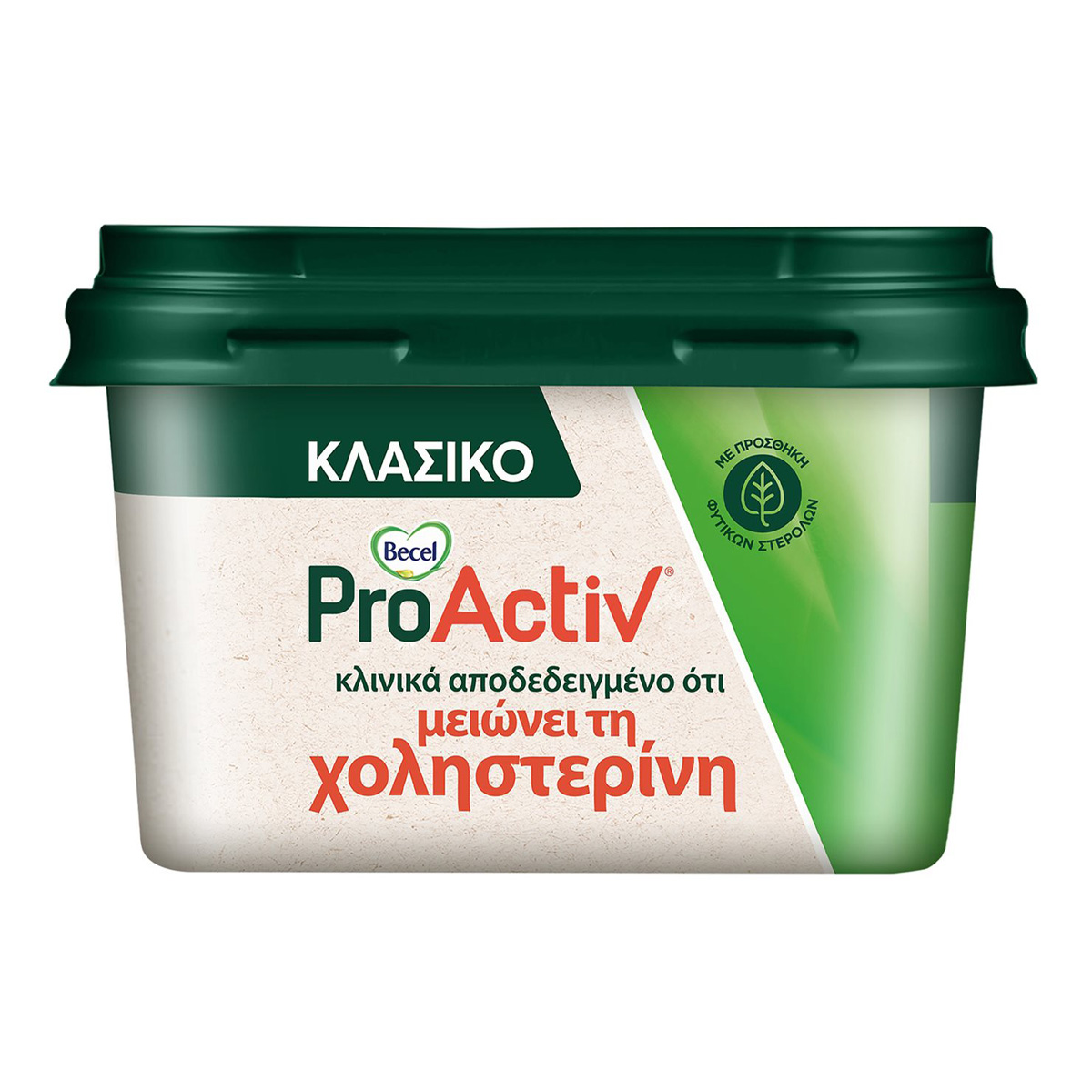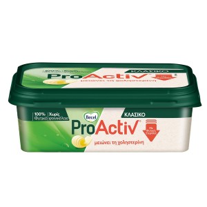Το Becel ProActiv είναι ένα προϊόν επάλειψης που είναι κλινικά αποδεδειγμένο ότι μειώνει αποτελεσματικά τη χοληστερίνη 7-10%, σε 2-3 εβδομάδες στα πλαίσια μιας ισορροπημένης διατροφής και ενός υγιεινού τρόπου ζωής. Χωρίς φοινικέλαιο.