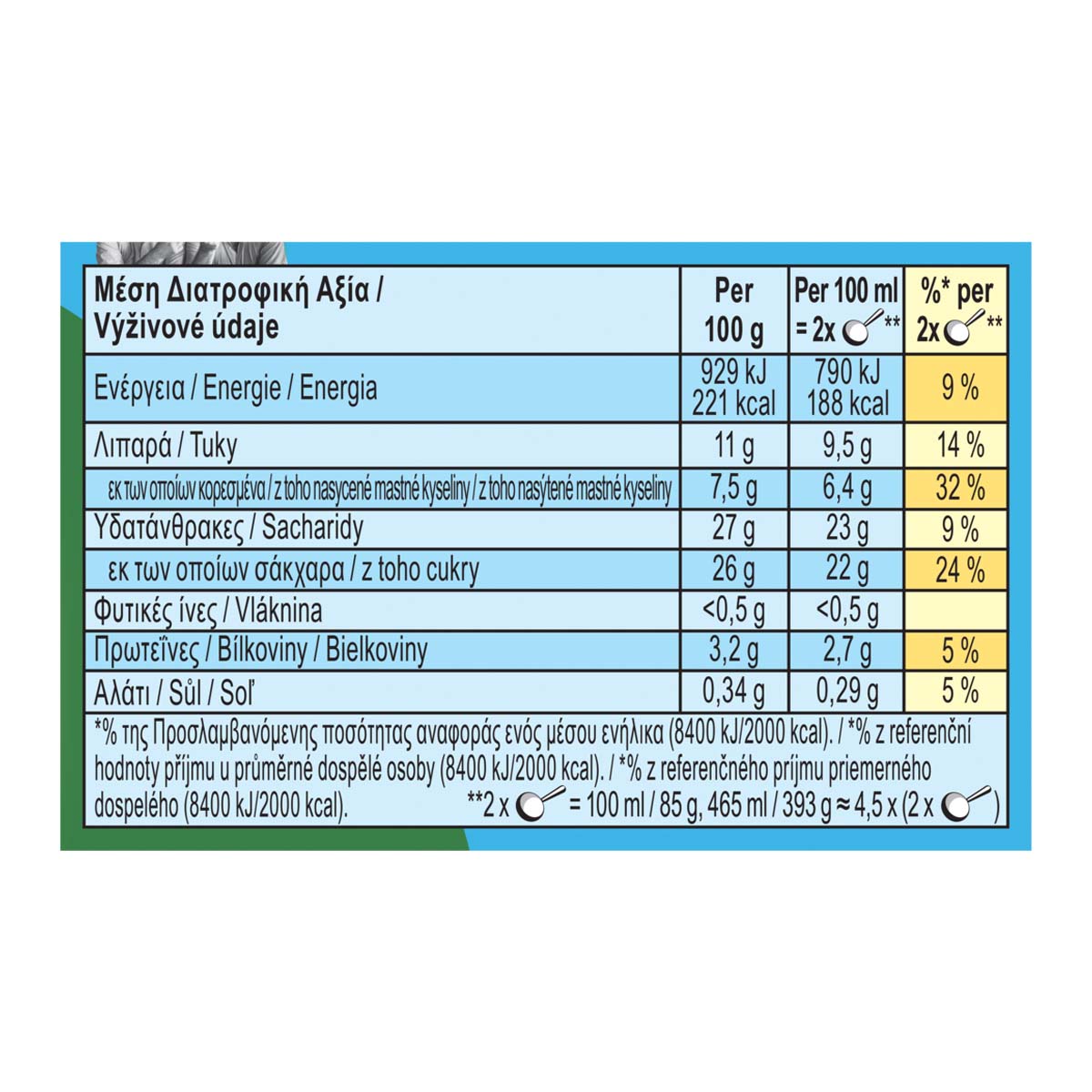 | Ενέργεια (ανά 100g) | 221 kcal |