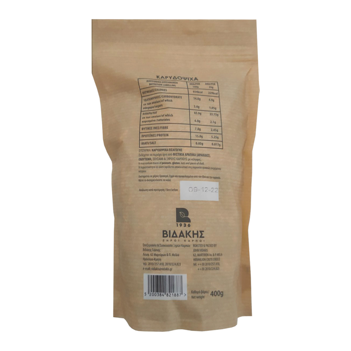 Επεξεργασία & Συσκευασία Ξηρών Καρπών Βιδάκης Ιωάννης, Λεωφ. 62 Μαρτύρων & Π. Μελλά, Ηράκλειο - Κρήτη, Τηλ.: 2810 257 410 2810 224 823, E-mail:vidakis@vidakis.gr