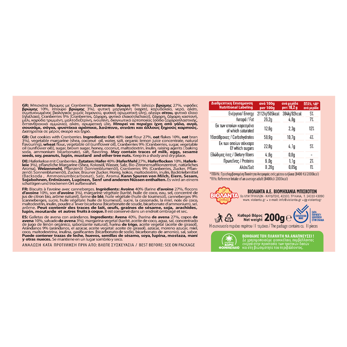 Βιολάντα Μπισκότα Βρώμης Με Cranberries 200 gr