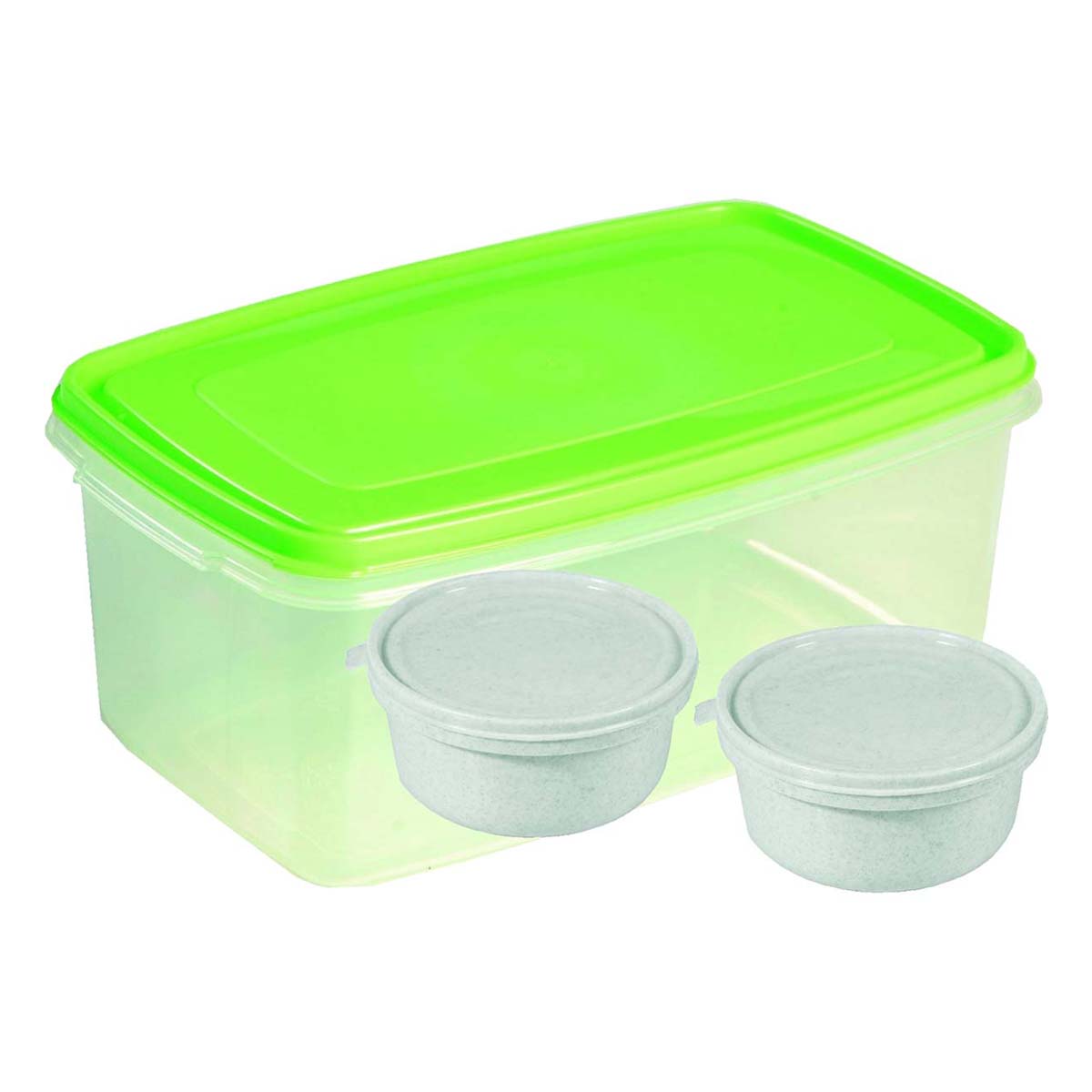 Πλήρως αεροστεγές φαγητοδοχείο, διάφανο, με χρωματιστό καπάκι, κατάλληλο για διατήρηση τροφίμων και για χρήση σε φούρνο μικροκυμάτων. Πλένεται σε πλυντήριο πιάτων.