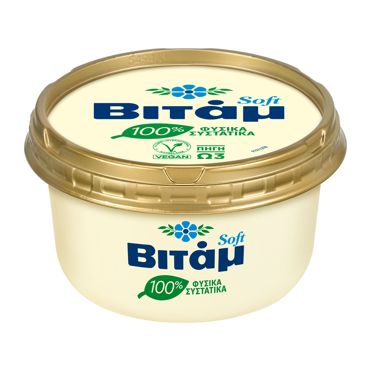 Το Βιτάμ Soft, από 100% φυσικά συστατικά, πλούσιο σε Ω-3 λιπαρά και βιταμίνη D, δίνει τέλεια γεύση στις συνταγές σας, τόσο στη μαγειρική όσο και στη ζαχαροπλαστική. -100% φυσικά συστατικά -Πλούσιο σε ω-3 λιπαρά -Πλούσιο σε βιταμίνη D -Φυτική πηγή ενέργειας Vegan -Nηστίσιμο.
