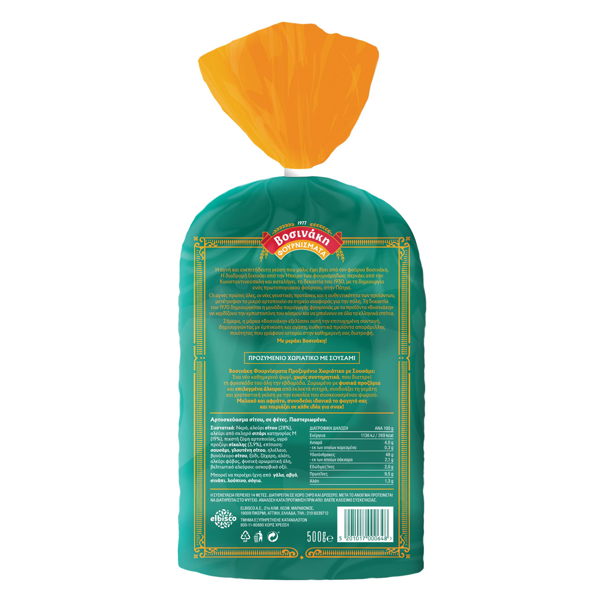Νερό, αλεύρι ΣΙΤΟΥ (28%), αλεύρι από ΣΚΛΗΡΟ σιτάρι Κατηγορίας Μ (19%), πιεστή ζύμη αρτοποιίας, υγρό προζύμι ΣΙΚΑΛΗΣ (3,9%), επίπαση: ΣΟΥΣΑΜΙ, ΓΛΟΥΤΕΝΗ ΣΙΤΟΥ, ηλιέλαιο, βυνάλευρο ΣΙΤΟΥ, ξύδι, ζάχαρη, αλάτι, αλεύρι φάβας, φυσική αρωματική ύλη, βελτιωτικό αλεύρου: ασκορβικό οξύ.