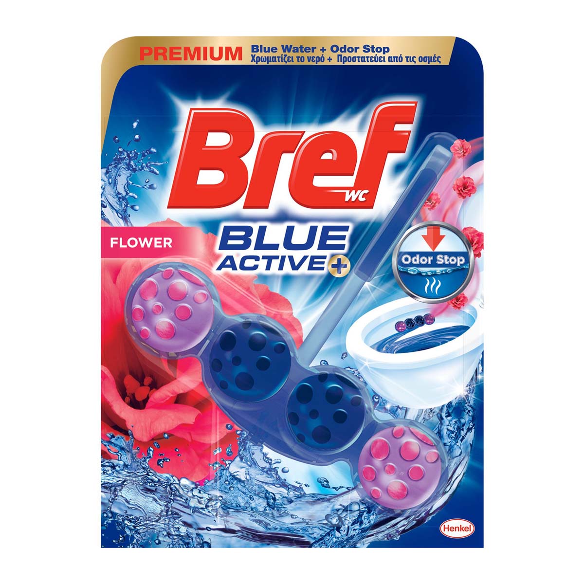 Η δύναμη του μπλε νερού στην τουαλέτα! Το μπλοκ τουαλέτας Bref Blue Activ ήρθε να προσφέρει μια καινούρια διάσταση στην υγιεινή της τουαλέτας. Χάρη στα ενεργά συστατικά του, διατηρεί την τουαλέτα σας καθαρή και γεμάτη φρεσκάδα ακόμα και όταν δεν την χρησιμοποιείτε. Πώς; Μόλις πατήσετε το καζανάκι, η θήκη του συγκεντρώνει νερό, το εμπλουτίζει με τα ενεργά συστατικά του και το απελευθερώνει. Το μπλε νερό παραμένει στην τουαλέτα σας και την καθαρίζει μέχρι την επόμενη χρήση! Επιπλέον, εμπλουτισμένο με την επιτυχημένη φόρμουλα 4 λειτουργιών των Power Active, το Bref Blue Activ αποτρέπει τον σχηματισμό αλάτων, απελευθερώνει καθαριστικό αφρό, παρέχει ένα σύστημα ενεργής προστασίας, αποτρέποντας την συσσώρευση υπολειμμάτων και προσφέρει περισσότερη φρεσκάδα.