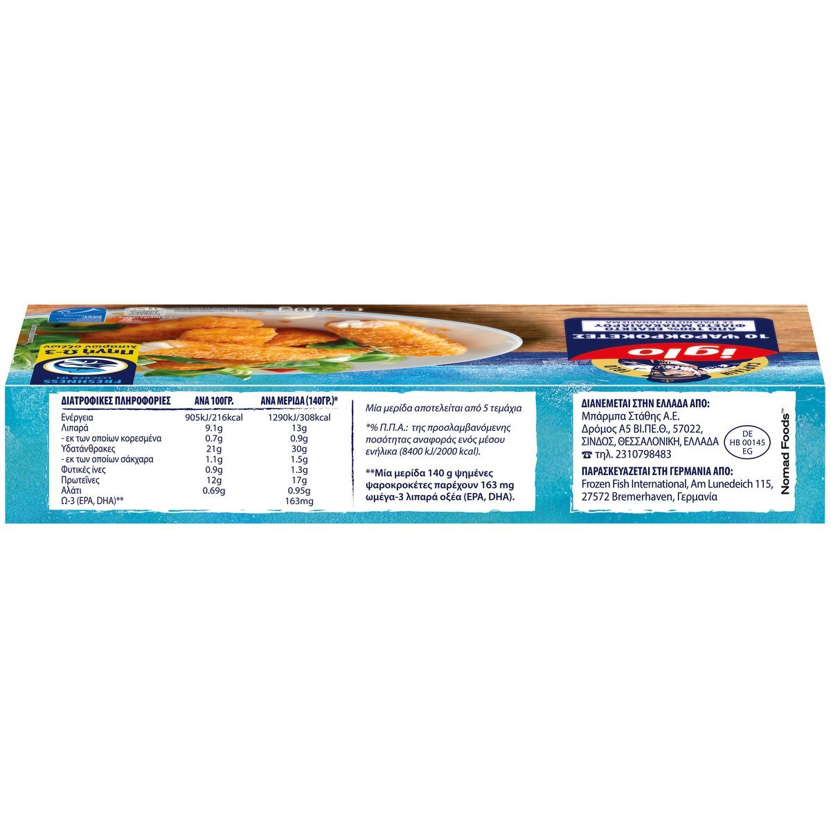 Ψαροκροκέτες από 100% φιλέτο μπακαλιάρου σε τραγανιστό πανάρισμα. Αποτελεί πηγή Ω-3 λιπαρων οξέων χωρίς προσθήκη συντηρητικών, ενισχυτικών γεύσης, χρωστικών & αρωματικών σε ανακυκλώσιμη συσκευασία.