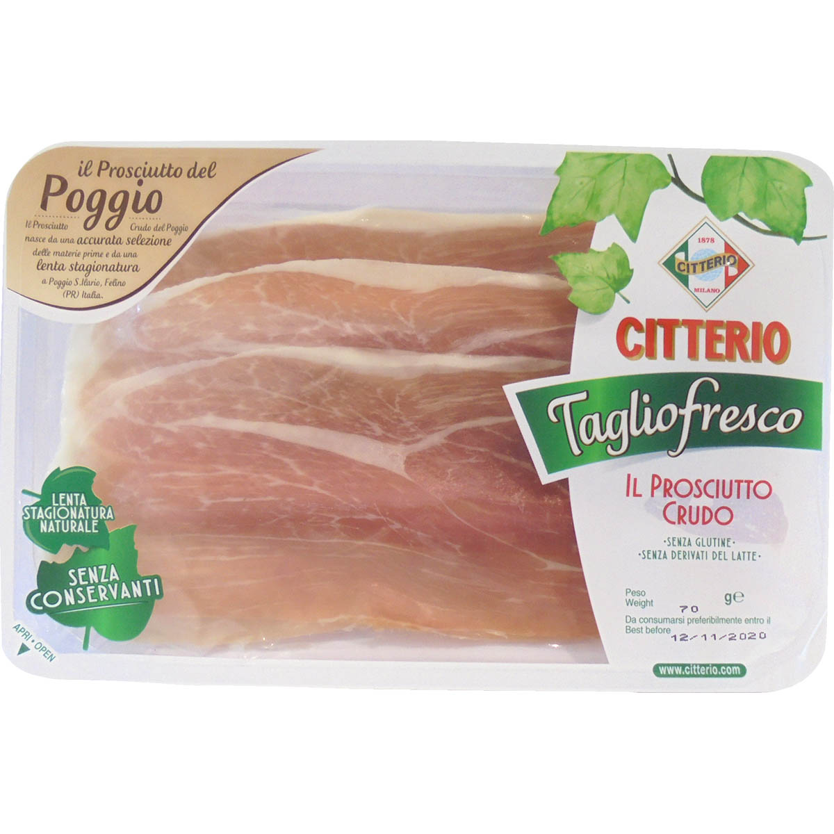 Το φημισμένο Προσούτο Citterio σε συσκευασία 70g. Το Prosciutto Crudo ακολουθεί αυστηρό διάστημα ωρίμανσης 13 μηνών. Το αποτέλεσμα είναι ένα γλυκό προσούτο με λεπτή και μοναδική γεύση.