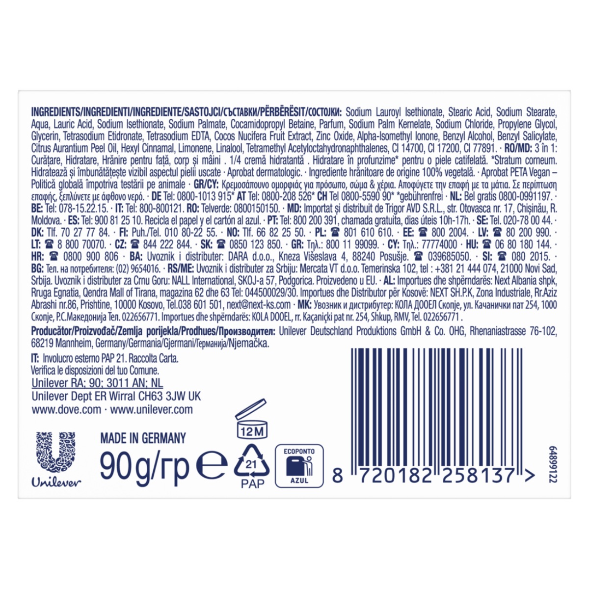 Το Dove Σαπούνι Coconut με 1/4 ενυδατική κρέμα, εμπλουτίστηκε με ένα πλούσιο μείγμα από γάλα καρύδας και πέταλα γιασεμιού.