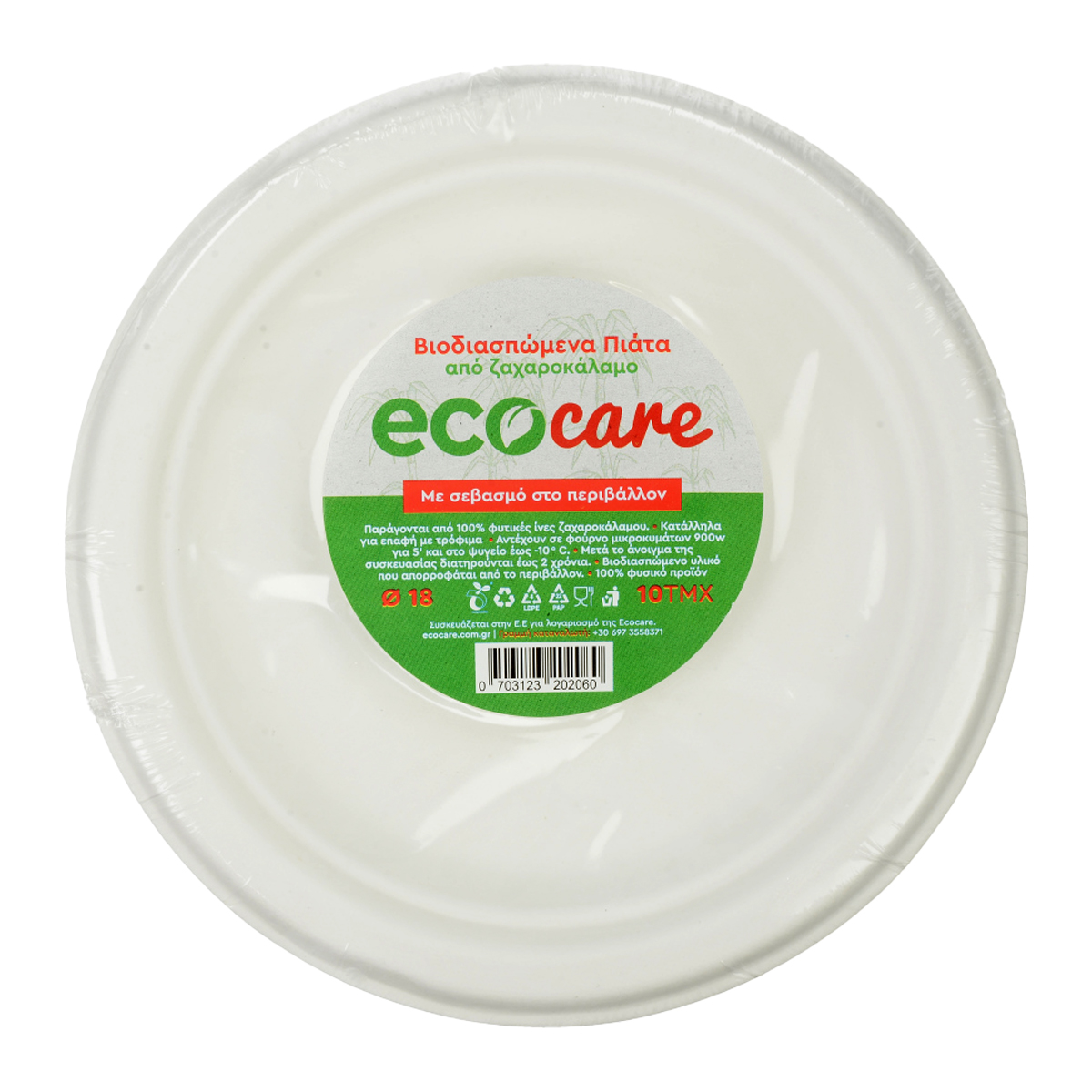 Ecocare Πιάτο Στρογγυλό Από Ζαχαροκάλαμο 18 cm 10 Τεμάχια