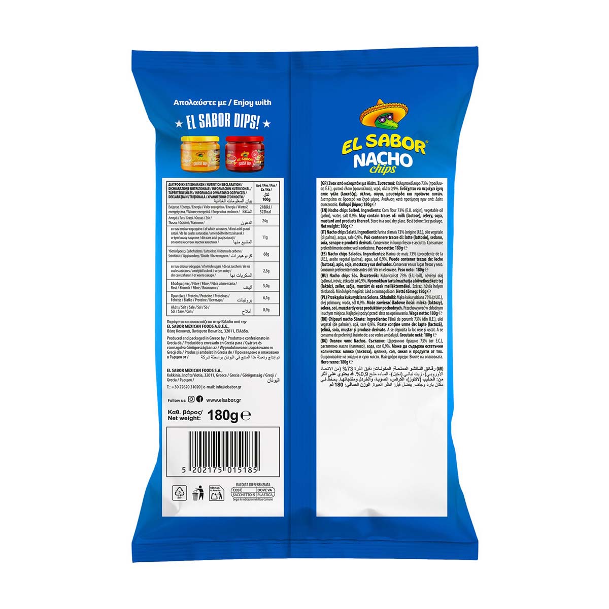 El Sabor Nacho Chips Με Αλάτι Χωρίς Γλουτένη 180 gr