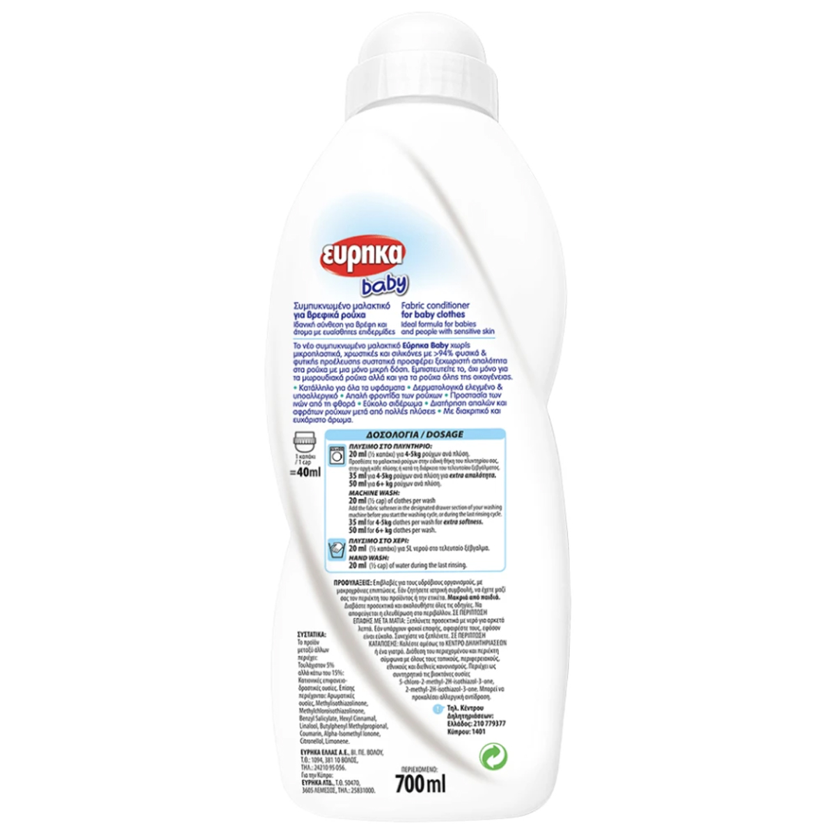 Εύρηκα Baby Συμπυκνωμένο Υγρό Μαλακτικό Για Βρεφικά Ρούχα 35 Μεζούρες 700 ml