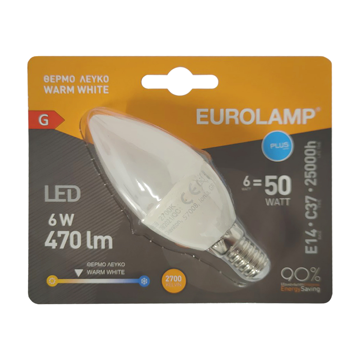 Eurolamp Λάμπα Led Θερμό Λευκό 6W 220 - 240V E14
