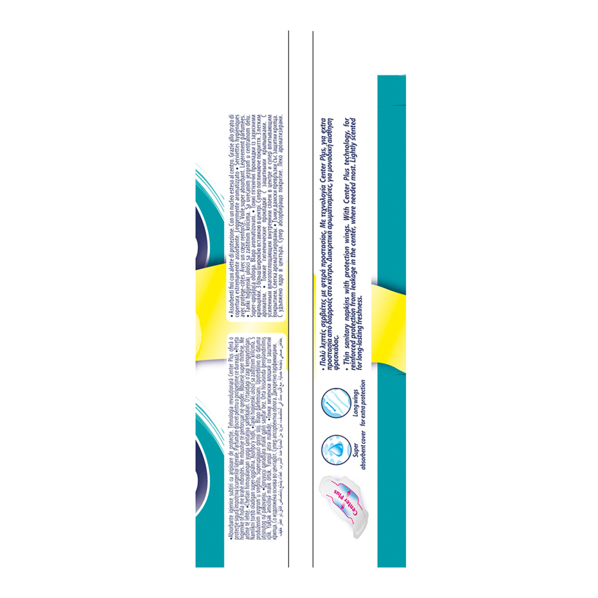 Κανονικού μήκους λεπτές σερβιέτες, με φτερά προστασίας. Με την επαναστατική τεχνολογία Center Plus, με διευρυμένο πυρήνα, που εξασφαλίζει έως και 30% μεγαλύτερη απορροφητική επιφάνεια στο κέντρο της σερβιέτας, σε σχέση με άλλες λεπτές σερβιέτες, για απίστευτη προστασία από διαρροές, εκεί που χρειάζεται περισσότερο. Με υπερ-απορροφητικό κάλυμμα. Διακριτικά αρωματισμένες για αίσθηση φρεσκάδας που διαρκεί. Δερματολογικά ελεγμένες.