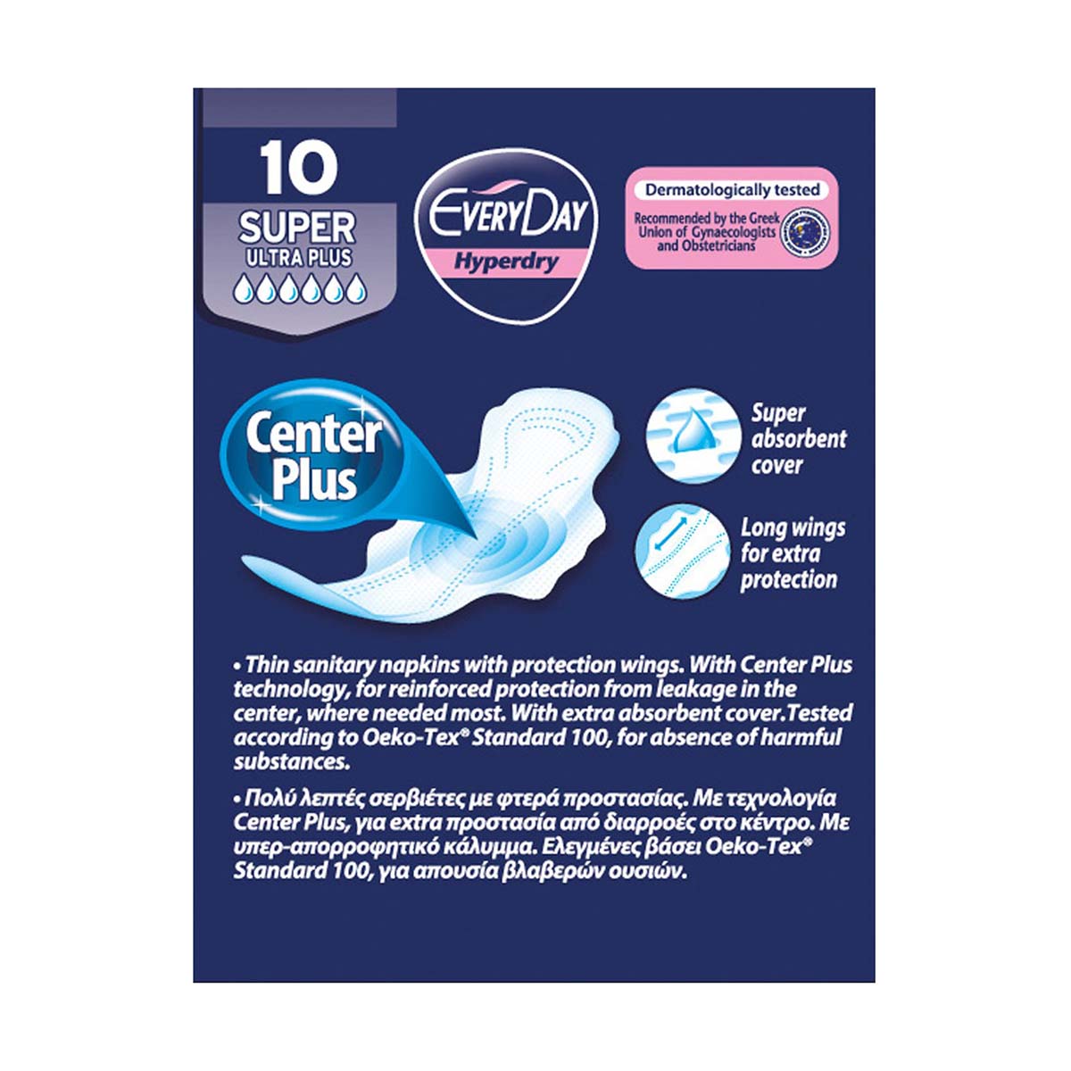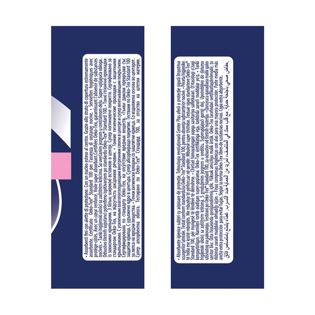 Μεγάλου μήκους λεπτές σερβιέτες, με φτερά προστασίας. Με την επαναστατική τεχνολογία Center Plus, με διευρυμένο πυρήνα, που εξασφαλίζει έως και 30% μεγαλύτερη απορροφητική επιφάνεια στο κέντρο της σερβιέτας, σε σχέση με άλλες λεπτές σερβιέτες, για απίστευτη προστασία από διαρροές, εκεί που χρειάζεται περισσότερο. Δερματολογικά ελεγμένες.