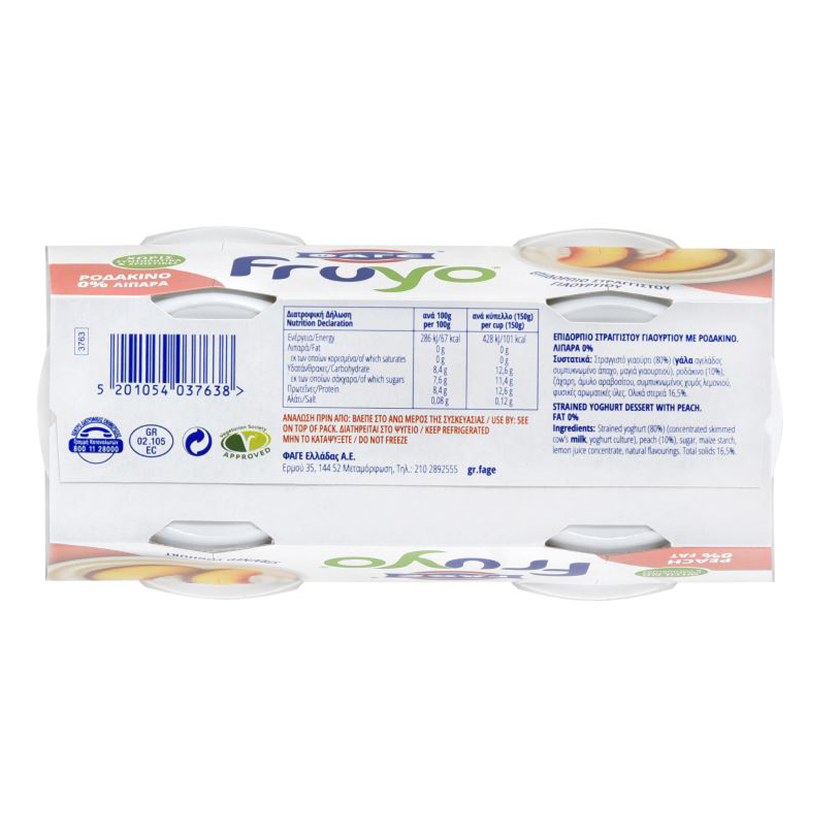 Φάγε Fruyo Επιδόρπιο Γιαουρτιού 0% Ροδάκινο Χωρίς Γλουτένη 2 x 150 gr