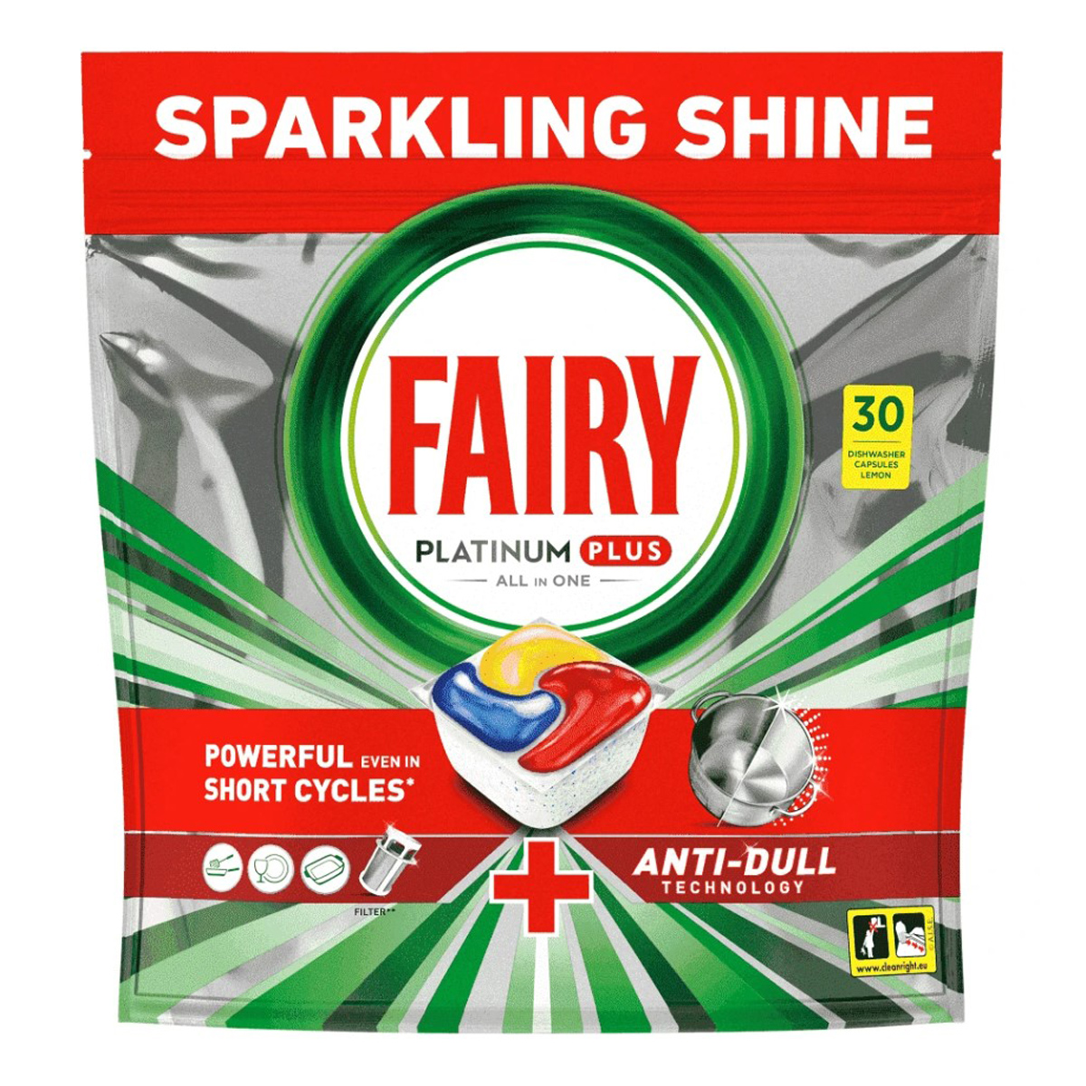 Fairy Platinum Plus Κάψουλες Πλυντηρίου Πιάτων Anti Dull Λεμόνι 30 Τεμάχια