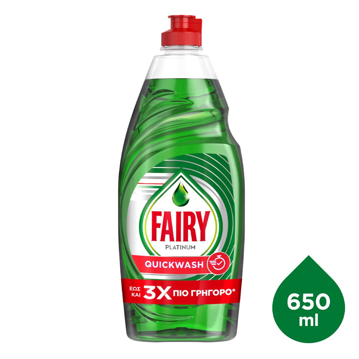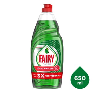 Το υγρό πιάτων Fairy Platinum Quickwash προσφέρει την καλύτερη καθαριότητα του Fairy και σας βοηθά να βγείτε από την κουζίνα πιο γρήγορα, προσφέροντάς σας γρήγορο και εύκολο καθάρισμα. Κάθε σταγόνα Fairy διεισδύει γρήγορα και αποδυναμώνει τα υπολείμματα τροφών στα πιάτα, αφήνοντας άψογα αποτελέσματα ενάντια και στα πιο σκληρά λίπη. Και μάλιστα, σε λιγότερο χρόνο και με λιγότερη προσπάθεια.