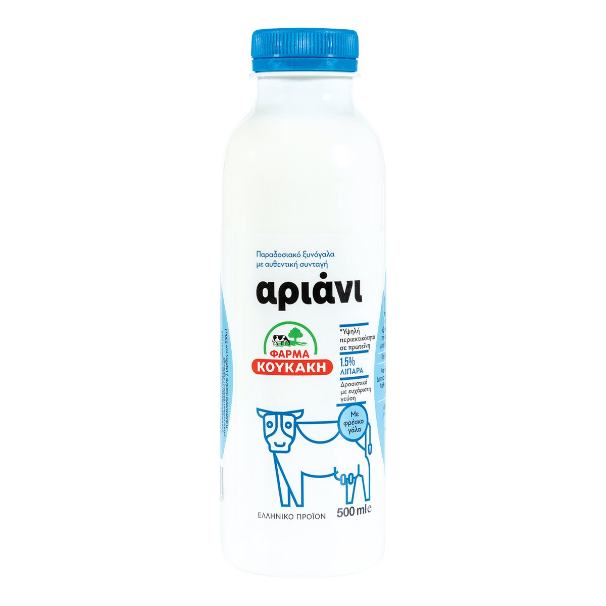 Δροσιστικό προϊόν, με χαμηλά λιπαρά (1.5%). Από 100% Ελληνικό γάλα, χωρίς συντηρητικά. Συνδυάζει τις ιδιότητες του γάλακτος και του γιαουρτιού και είναι ιδιαίτερα ευεργετικό για το πεπτικό σύστημα.