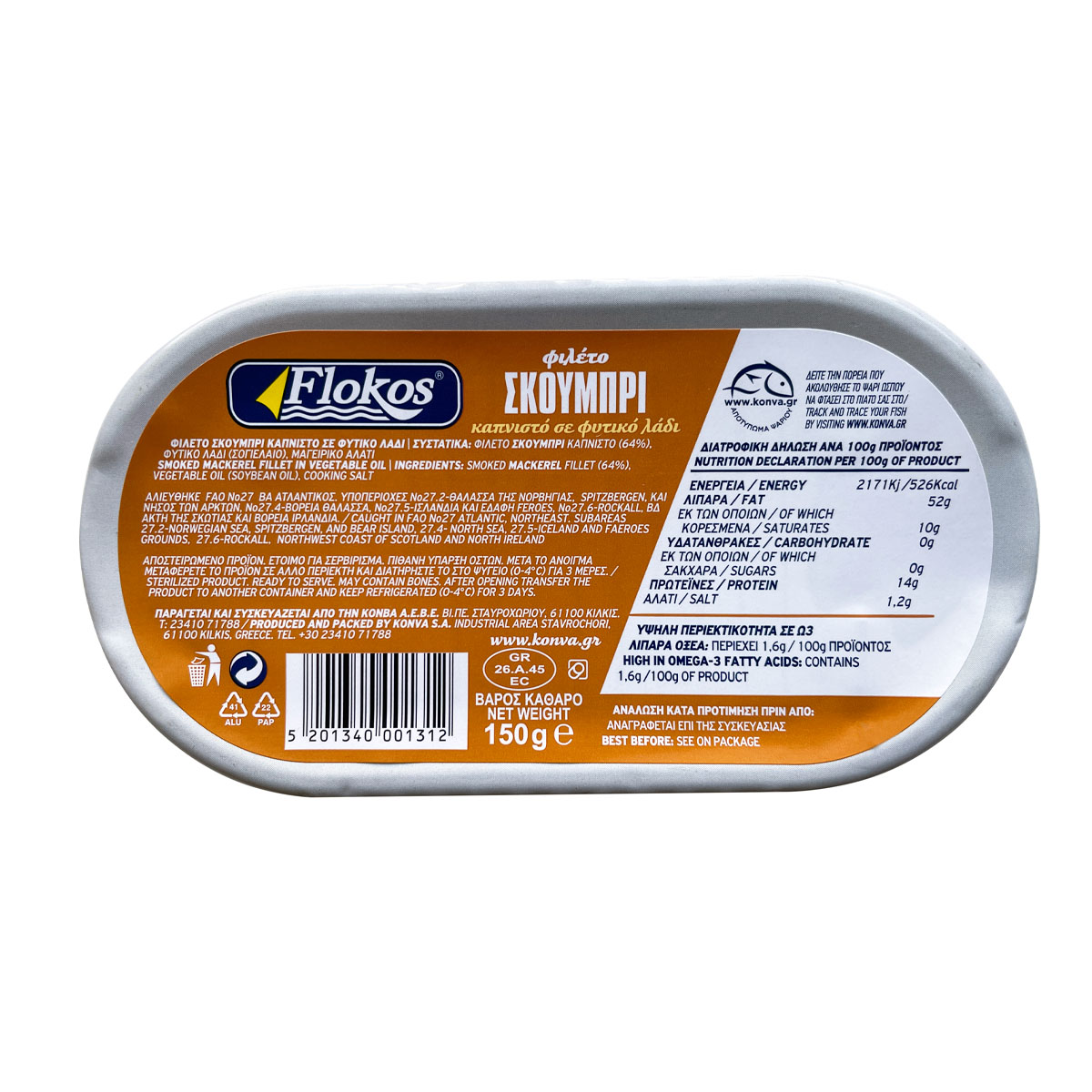 Ένα από τα πλουσιότερα ψάρια σε ιχνοστοιχεία, βιταμίνες και Ω3, το εκλεκτό σκουμπρί FLOKOS αποτελεί μία θρεπτική και πεντανόστιμη πρόταση διατροφής, χωρίς συντηρητικά, για κάθε στιγμή της ημέρας. Το μοναδικής ποιότητας φυσικό κάπνισμα σε ξύλα οξιάς προσδίδει πλούσιο άρωμα και ενισχύει την απόλαυση!