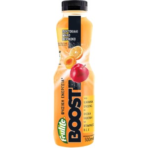Το φρουτοποτό BOOST πορτοκάλι, μήλο, βερύκοκο περιέχει βιταμίνες (Β6, Β12, C, E) Guarana, Ginseng και φυσική καφεΐνη για να έχεις την ενέργεια που χρειάζεσαι μέσα στην ημέρα σου!