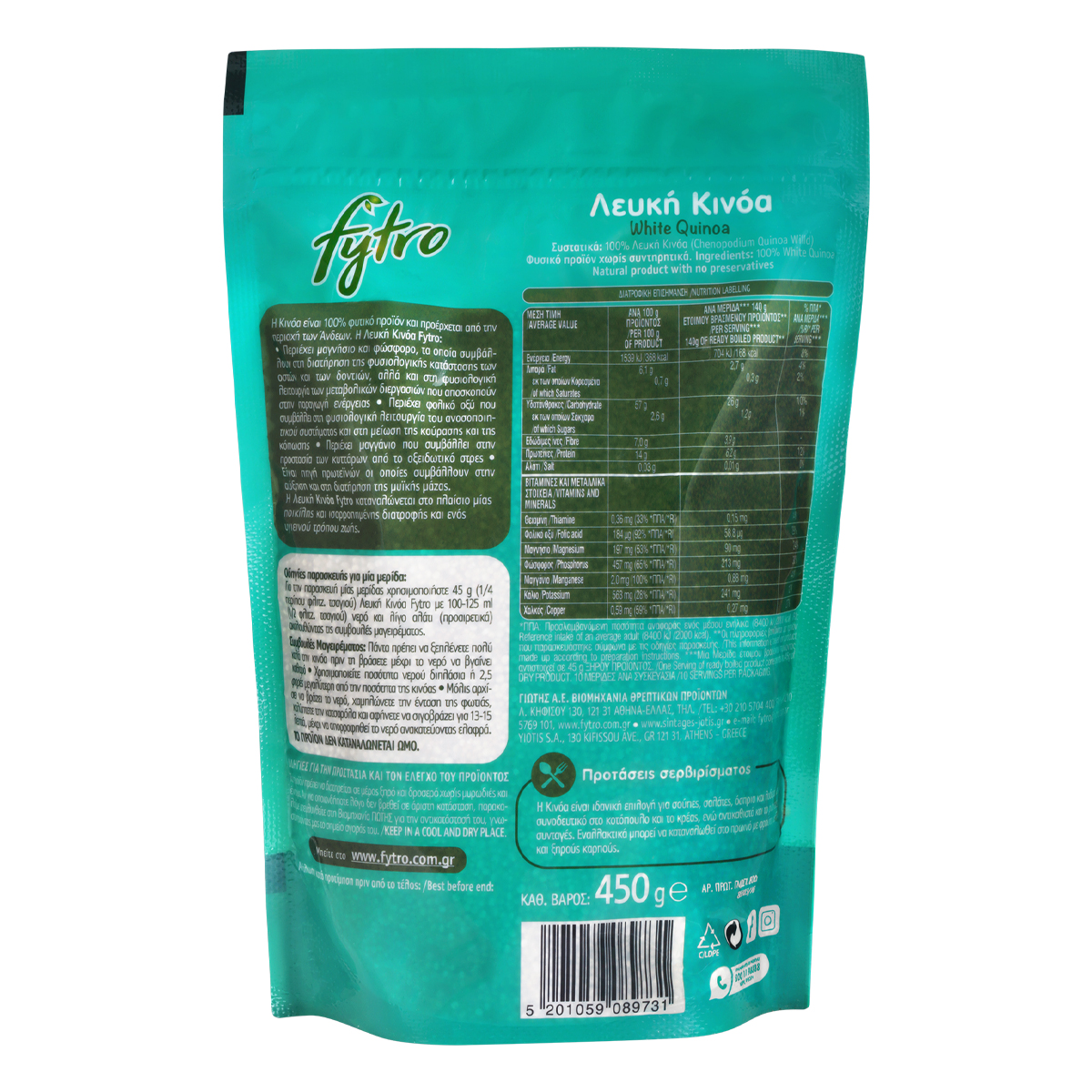 Το Λευκό Κινόα Fytro είναι πηγή πρωτεϊνών οι οποίες συμβάλλουν στην αύξηση και στη διατήρηση της μυϊκής μάζας καθώς επίσης και στη διατήρηση της φυσιολογικής κατάστασης των οστών. Το Κινόα Fytro θα πρέπει να καταναλώνεται στο πλαίσιο μίας ποικίλης και ισορροπημένης διατροφής και ενός υγιεινού τρόπου ζωής.