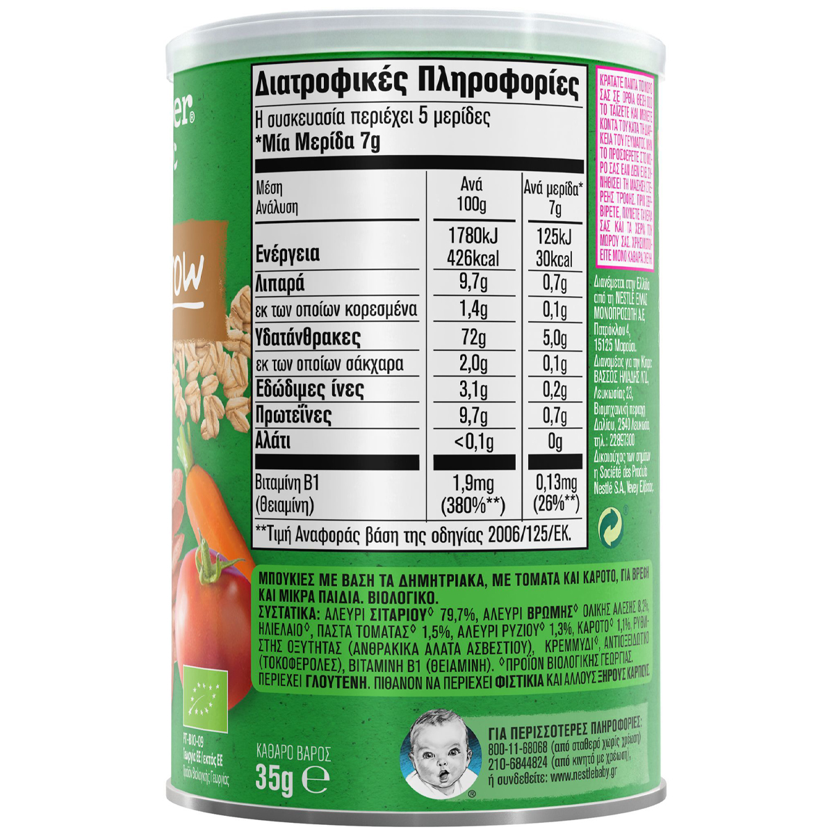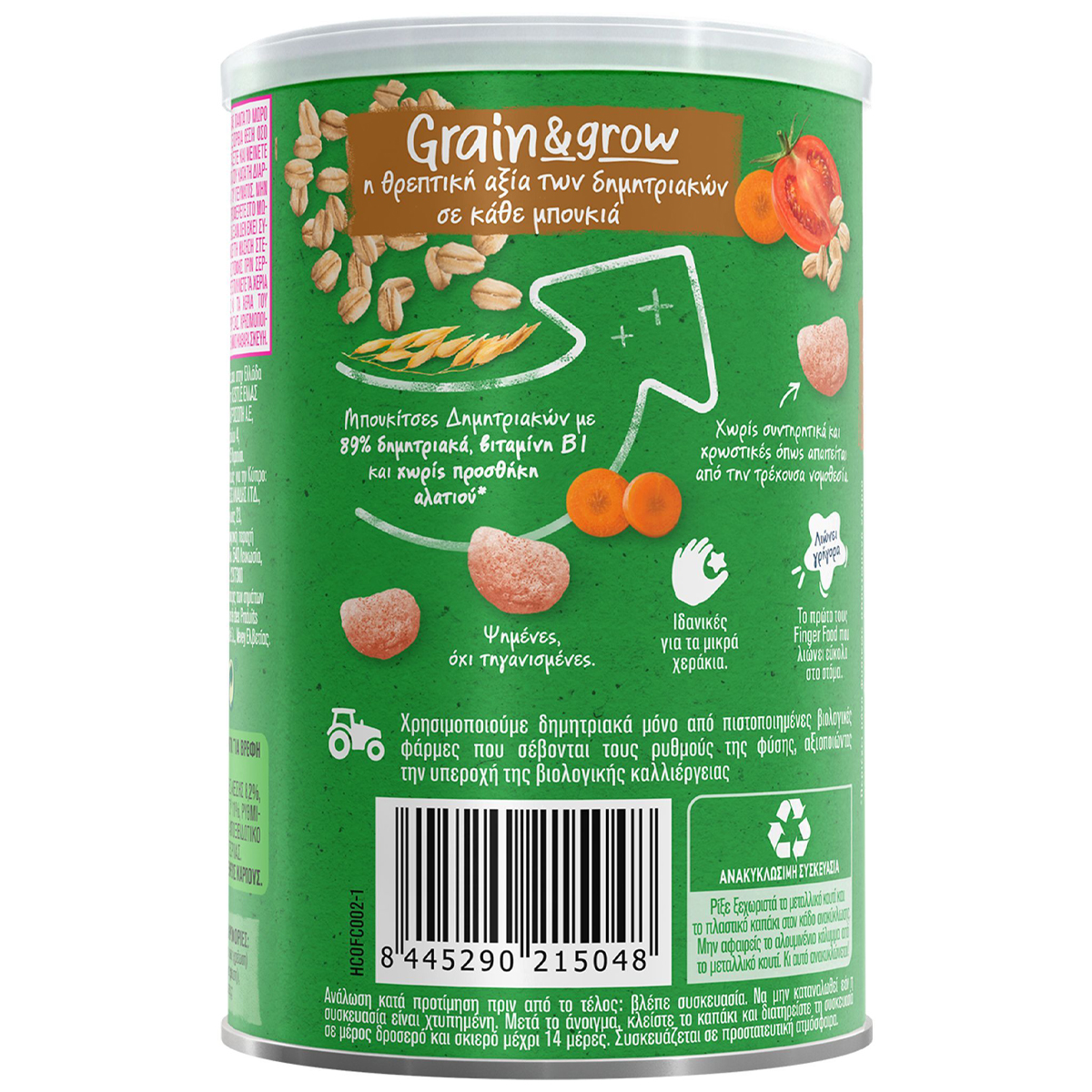 Μπουκιές με βάση τα δημητριακά, με τομάτα και καρότο, για βρέφη και μικρά παιδιά. Βιολογικό. Ιδανικές όταν έρθει η ώρα για ένα υγιεινό σνάκ! Παρασκευάζονται από βιολογικά δημητριακά, φρούτα και λαχανικά από επιλεγμένες βιολογικές καλλιέργειες για βρέφη. Μία διασκεδαστική εμπειρία εκπαίδευσης για να ξεκινήσει να τρώει το μωρό σου μόνο του* αφού είναι ειδικά σχεδιασμένες για τα μικρά χεράκια του αλλά και τα ευαίσθητα ούλα του. Λιώνουν εύκολα στο στόμα του μωρού σου, φέρνοντας το σε επαφή με νέες υφές και γεύσεις!