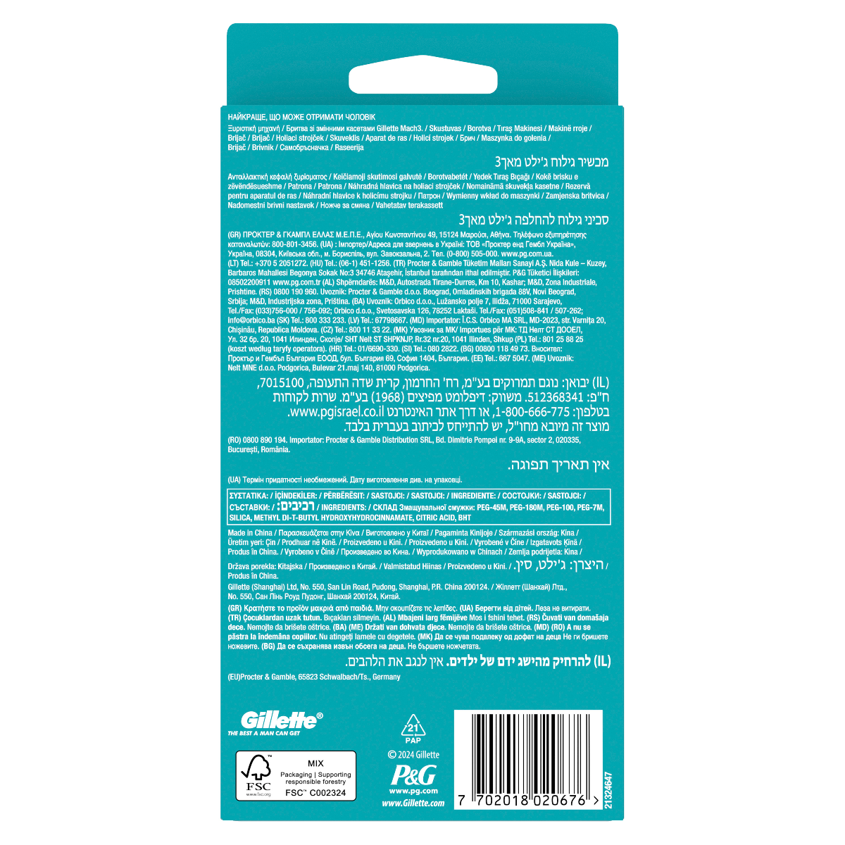 Απολαύστε ένα διαχρονικό και βαθύ ξύρισμα με την ξυριστική μηχανή Gillette Mach3. Η Mach3 διαθέτει λιπαντική ταινία για ακόμη πιο απαλή ολίσθηση (σε σύγκριση με τη Mach3) και ανταλλακτικές κεφαλές 3 λεπίδων για εύκολο, καθαρό και βαθύ ξύρισμα για αυξημένη άνεση. Εξοπλισμένη με Microfin Guard (Προστατευτικό με μικροράβδωση), προετοιμάζει την επιδερμίδα σας για το ξύρισμα, ενισχύοντας περαιτέρω τη συνολική εμπειρία.<br>- Τρεις αιχμηρές λεπίδες: Σύστημα 3 λεπίδων για εύκολο, καθαρό και βαθύ ξύρισμα που έχει σχεδιαστεί για να μειωθεί η καταπόνηση της επιδερμίδας* (*λεπίδες 1 και 3).